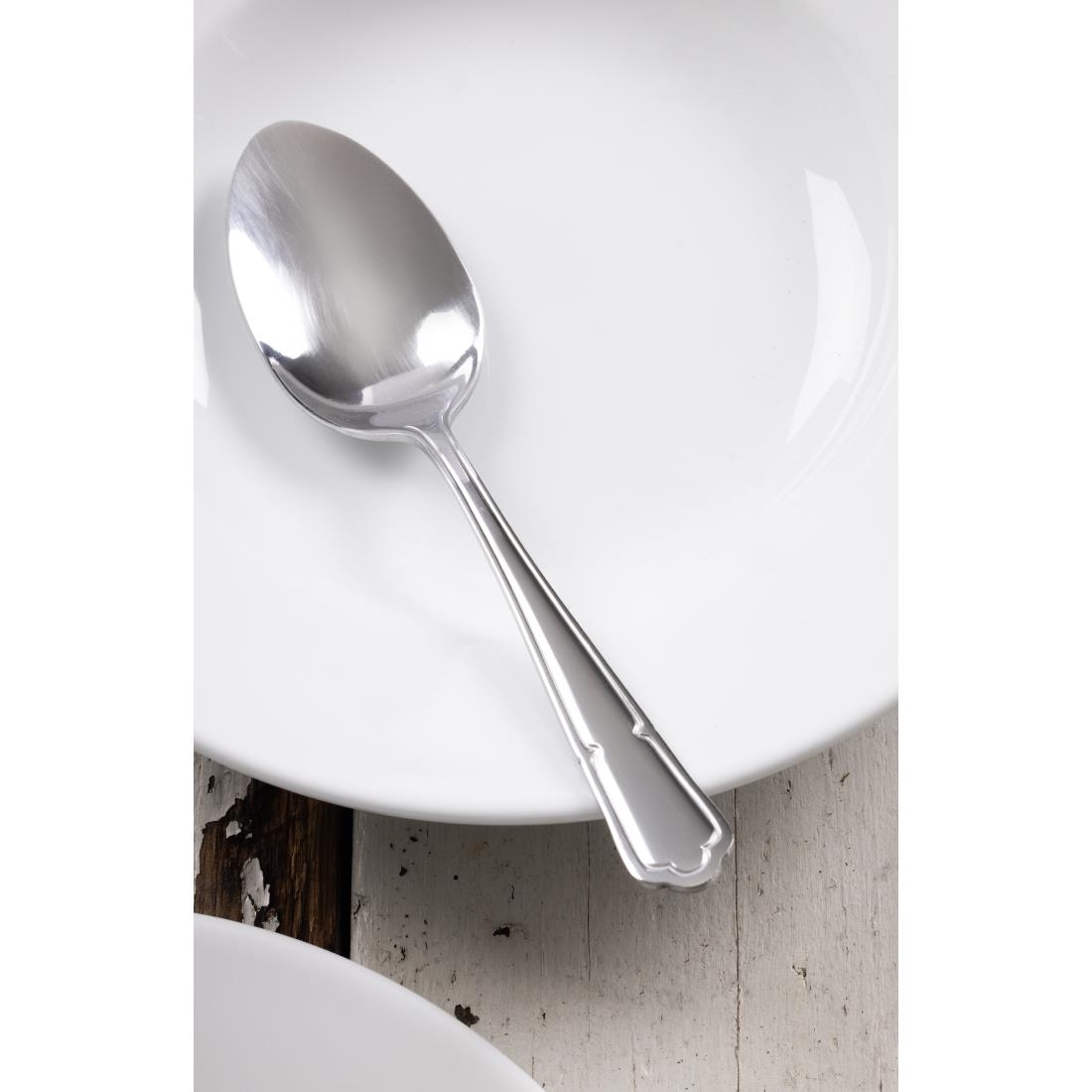 Polierter Edelstahl 18/0 mit eleganter Verzierung. Verkauft im 12er Pack.