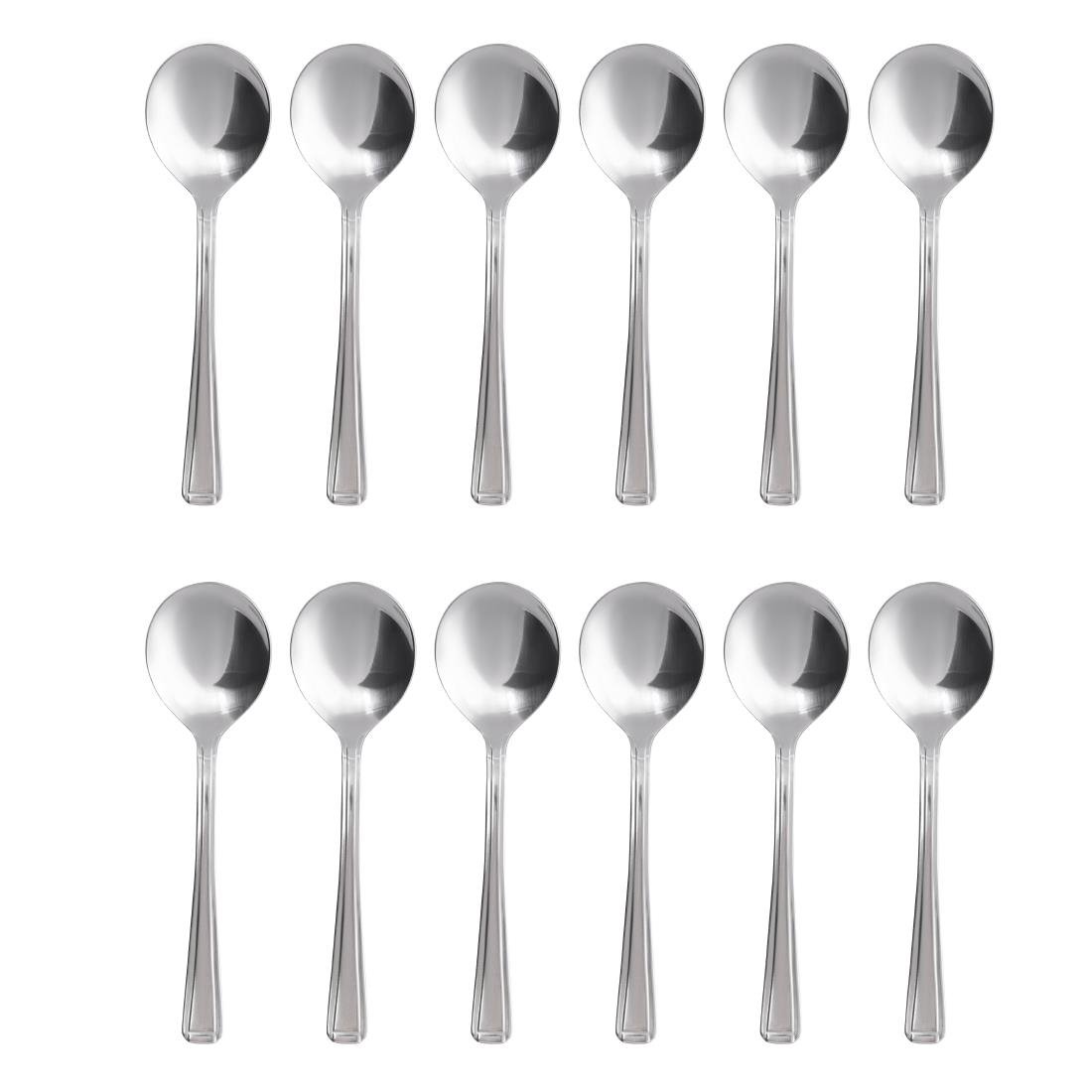 Polierter Edelstahl 18/0 mit einem einfachen Liniendekor. Verkauft im 12er Pack.