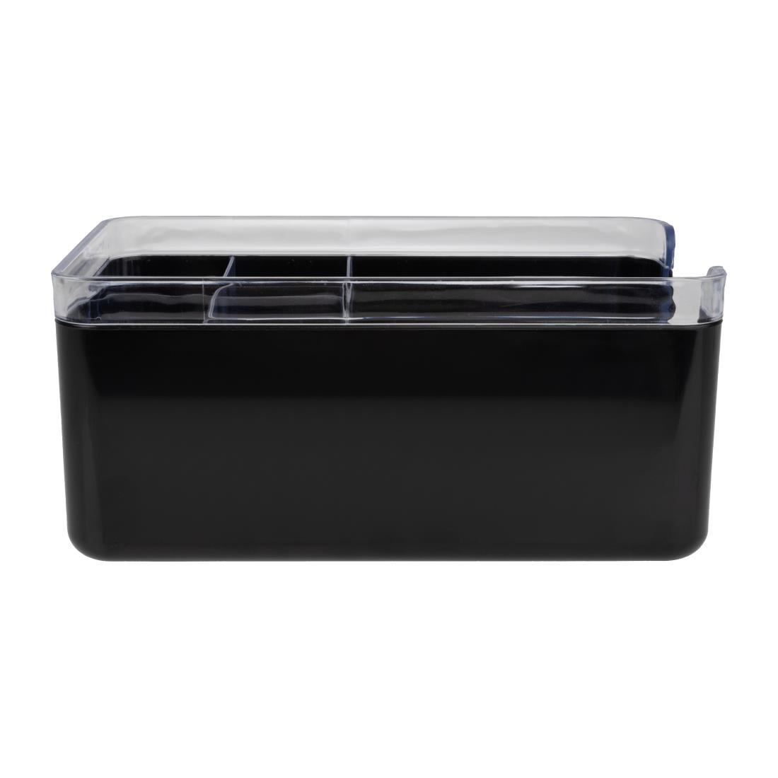 Mit mehreren Fächern für Rührstäbchen, Strohhalme und Servietten ist der Olympia Kristallon Bar Caddy ein wesentliches Organisationswerkzeug für jede Bar oder jedes Café.
