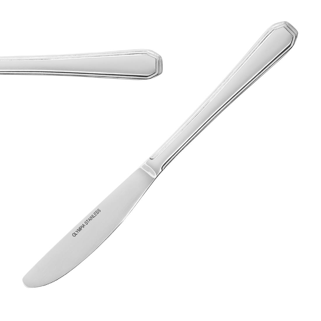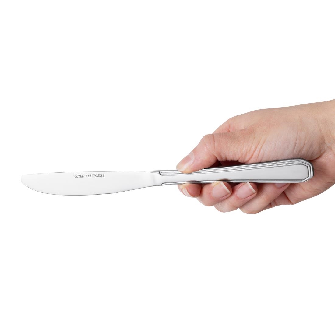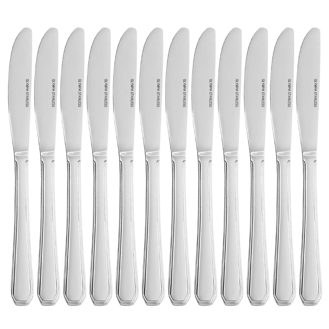 Eleganter hochglanzpolierter Edelstahl 18/0 mit doppelkantigem Stufen-Design am Griff. Verkauft im 12er Pack.