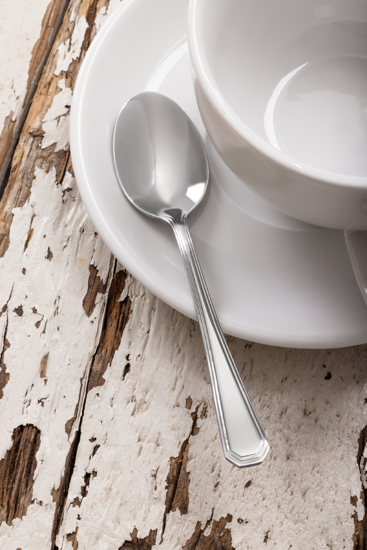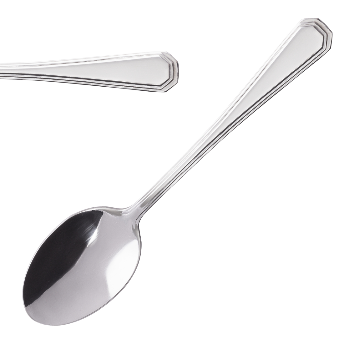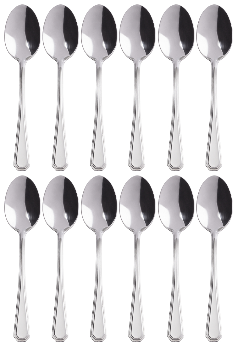Eleganter hochglanzpolierter Edelstahl 18/0 mit doppelkantigem Stufen-Design am Griff. Verkauft im 12er Pack.