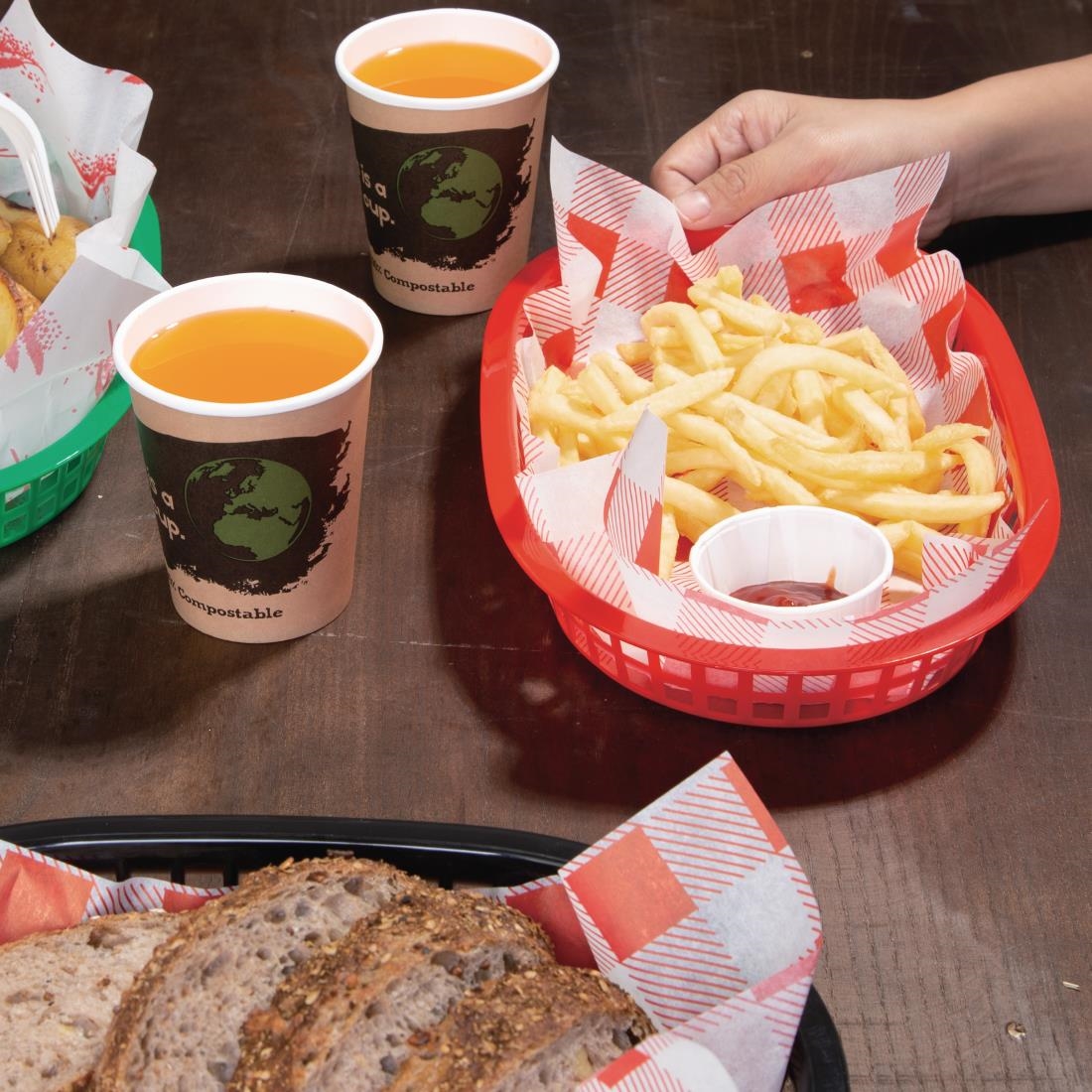 Servierkorb aus Polypropylen zum Servieren von Pommes, Burgern, Sandwiches und vielem mehr. Mikrowellen-, gefrierer- und geschirrspülergeeignet. Größe: 4(H) x 27,5(B) x 17,5(T)cm.