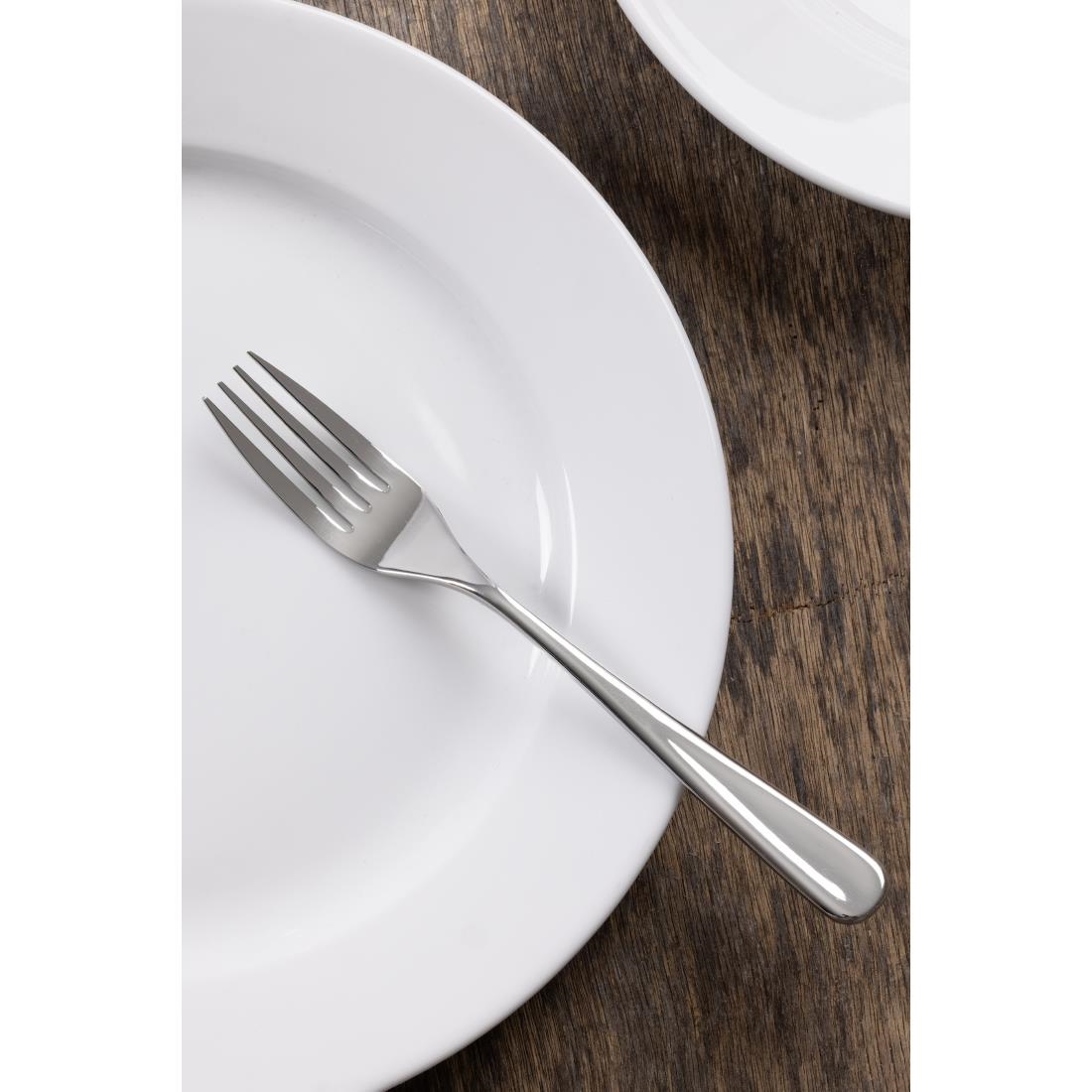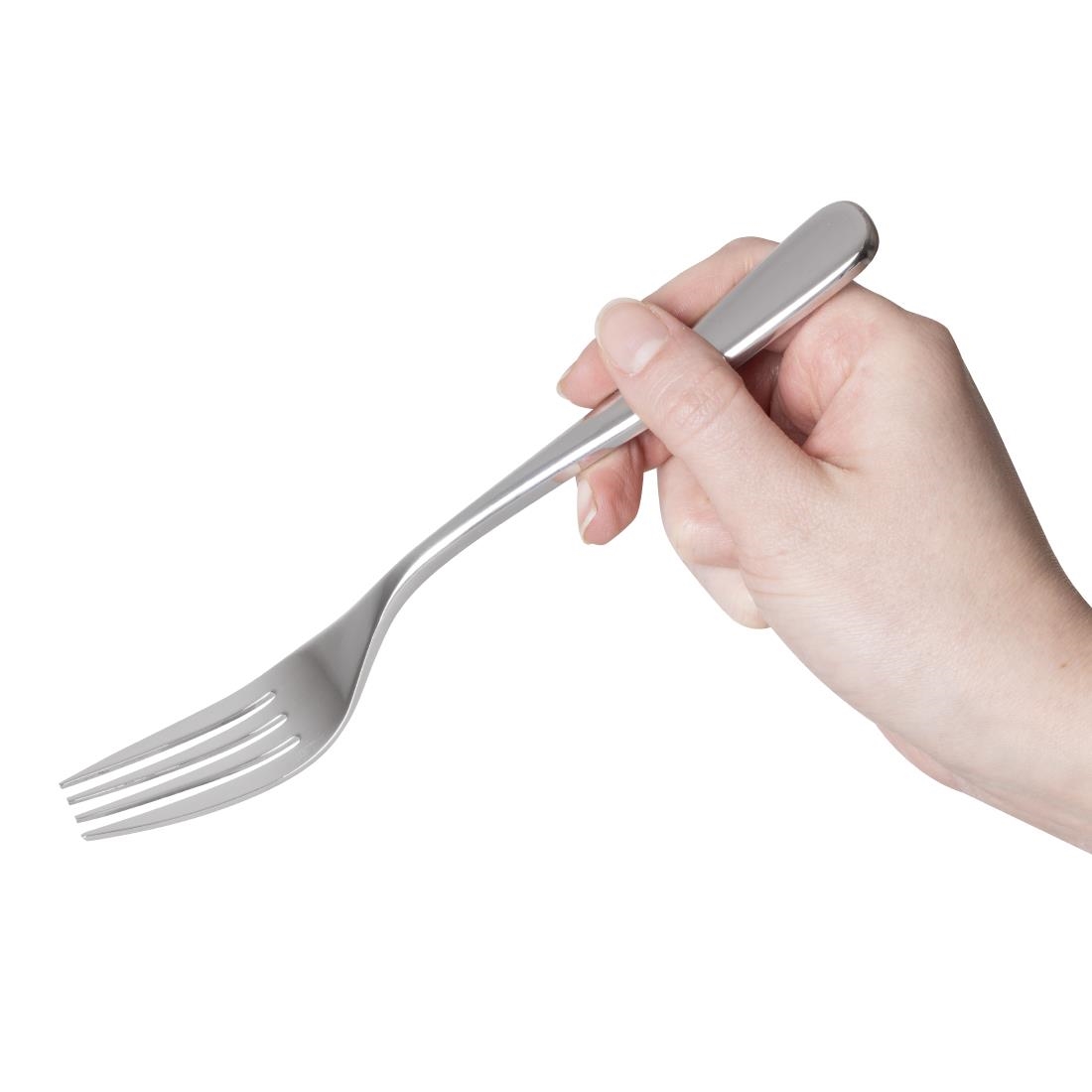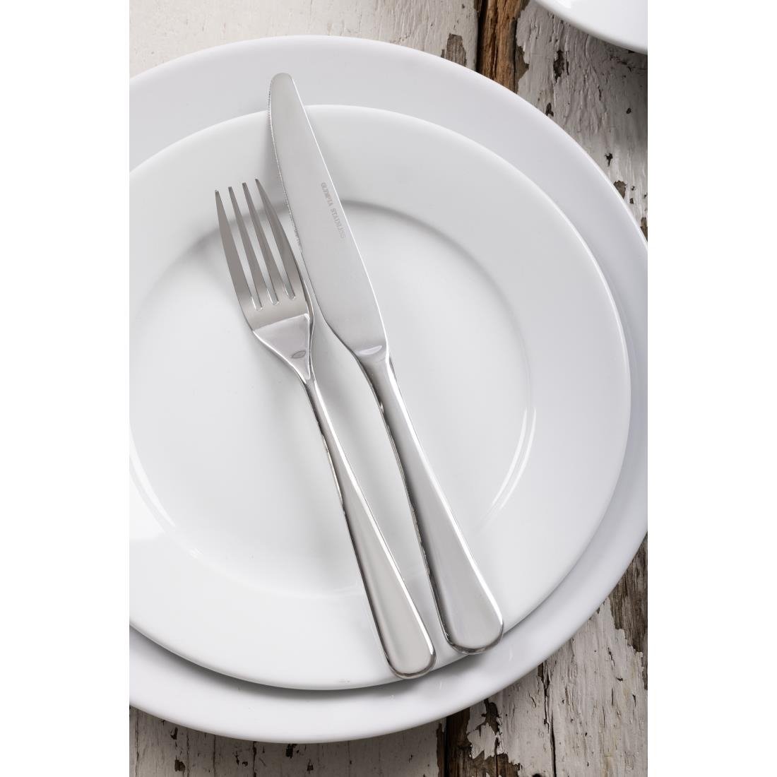 Glatte Linien, die zu einem auslaufenden Griff in Tropfenform fließen, verleihen jeder Tischdekoration einen Hauch von Eleganz. Robuster, geschmiedeter hochglanzpolierter Edelstahl 18/10. Verkauft im 12er Pack.