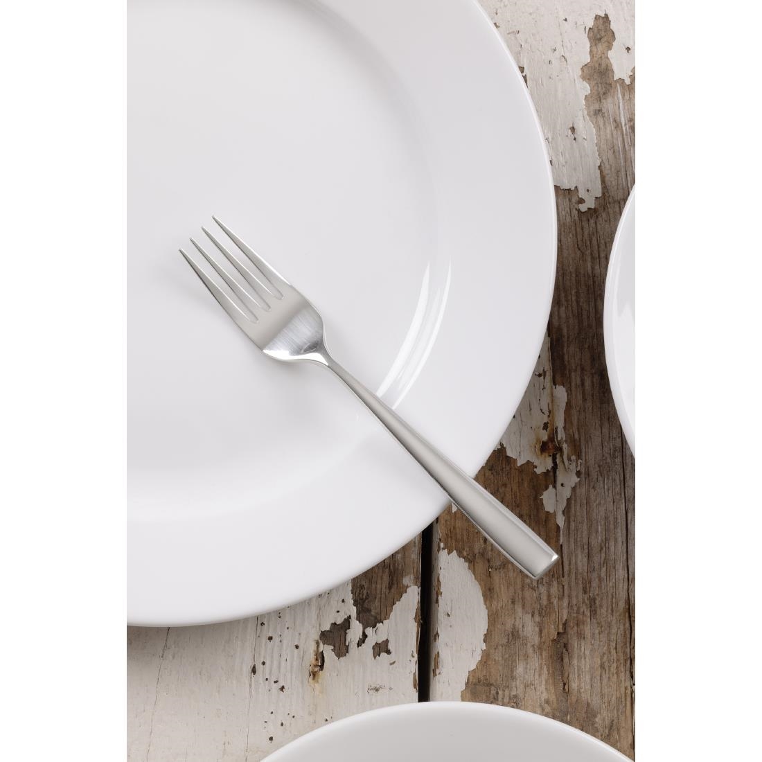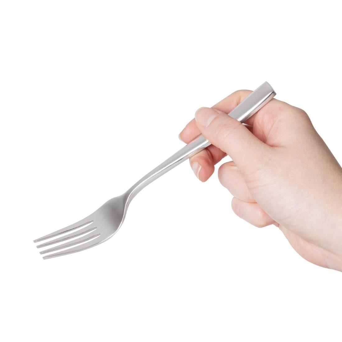 Markantes zeitgemäßes Design mit subtil gebogenen Griffen, die sich den Konturen der Hand anpassen. Langlebiger, geschmiedeter hochglanzpolierter Edelstahl 18/10. Verkauft im 12er Pack.