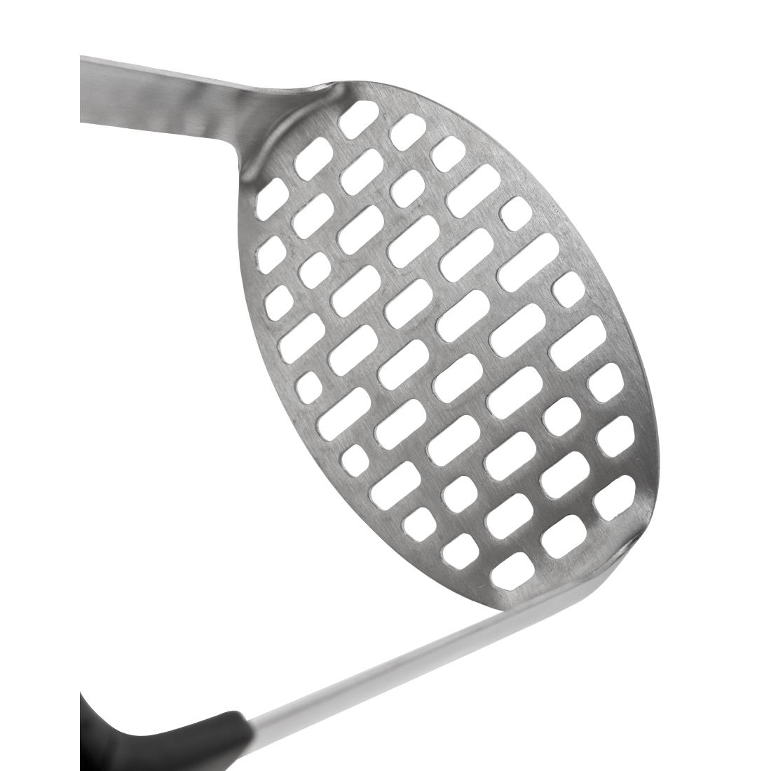 Schafft glattes Kartoffelpüree und ist auch für Karotten und Rüben geeignet. Ein breiter weicher horizontaler Griff für einfache zusätzliche Druckkraft. Edelstahlpürierplatte von 9,5 x7cm.