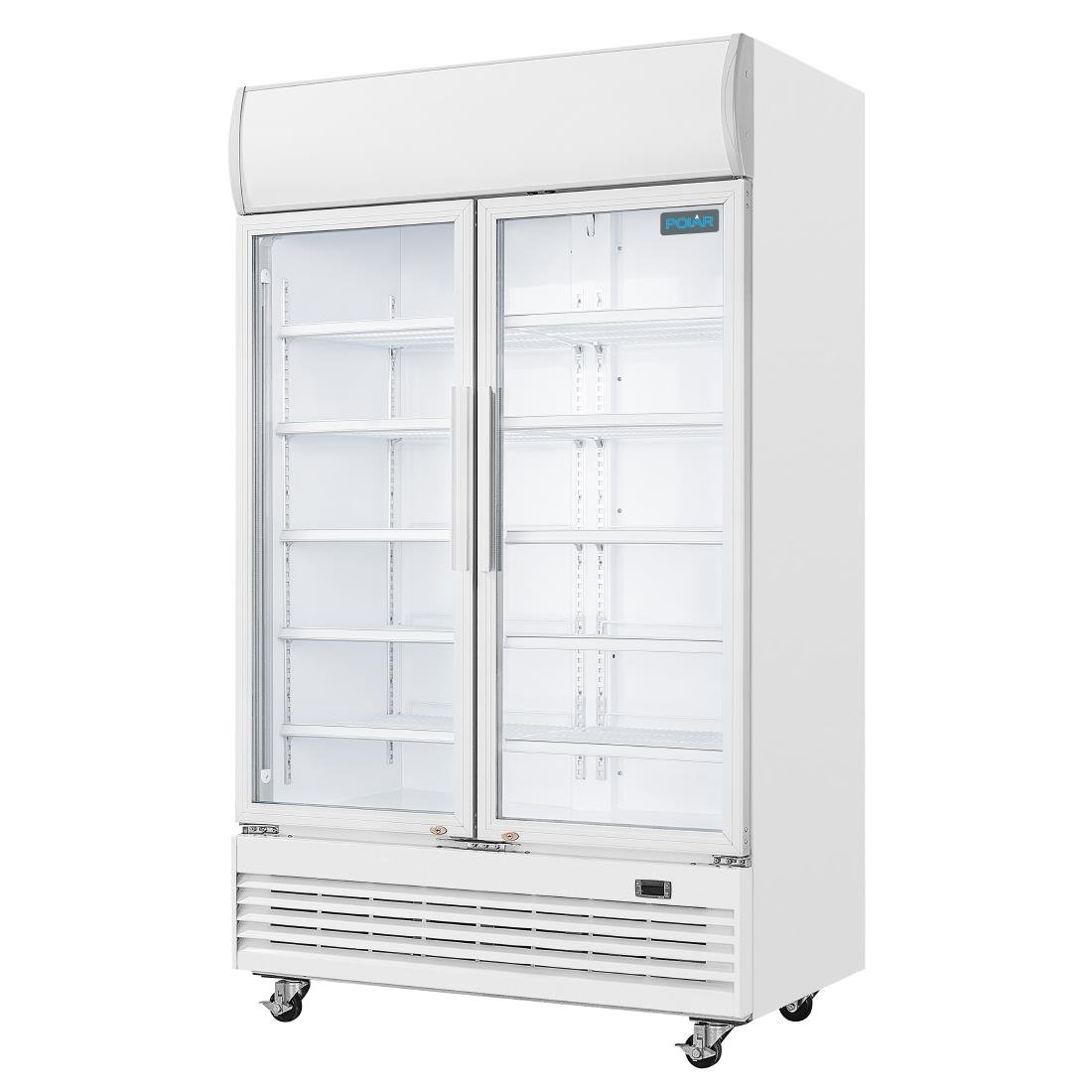 Polar G-Serie Zweitürige Displaykühlung mit Leuchtkasten 950L Schwingtüren