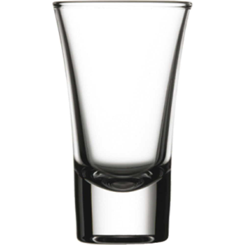 Das konische Schnapsglas besticht durch seinen besonders breiten Rand, der das Trinken der hochprozentigen Spirituose in einem Schluck für Ihren Gast zum Genuss macht.Dieses klare Glas in aktueller Form fasst mit max. 6 cl nicht nur einen einfachen Schnaps, sondern ebenso einen „Doppelten“ ohne Probleme.Der kräftige Glasboden sorgt für einen sicheren Stand beim Servieren und macht das Glas robuster gegen Absplitterungen beim Hinstellen. Nach der Reinigung in der Spülmaschine ist das Shot-Glas schnell wieder im Einsatz.