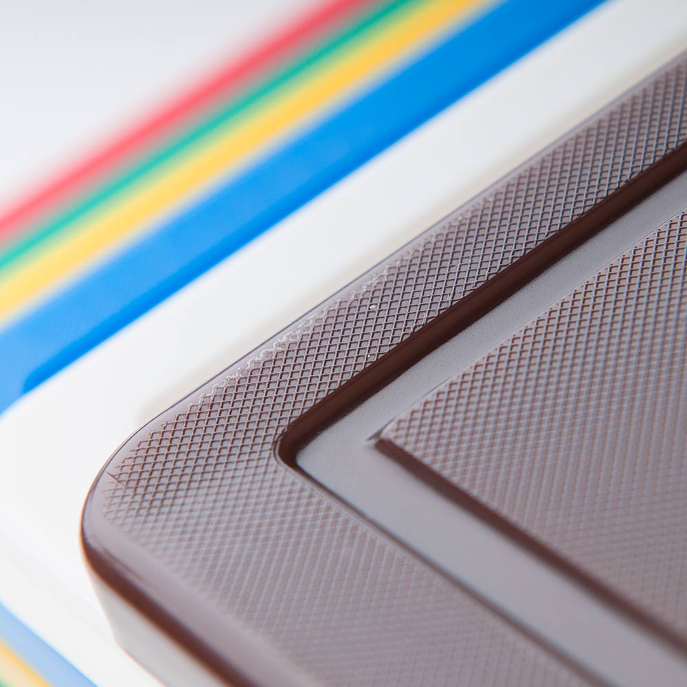 Zur Umsetzung des HACCP-Hygienekonzeptes sind farbkodierte Schneidbretter unumgänglich!Die Schneidbretter aus Polypropylen sind geschmacksneutral, hitzebeständig und für eine sichere Anwendung in der Küche empfehlenswert.Während eine Seite glatt ist, hat die zweite Seite eine umlaufende Saftrille, was besonders beim Schneiden von Lebensmitteln mit höherem Wassergehalt von Vorteil ist.Ressourcenschonende, europäische Produktion.