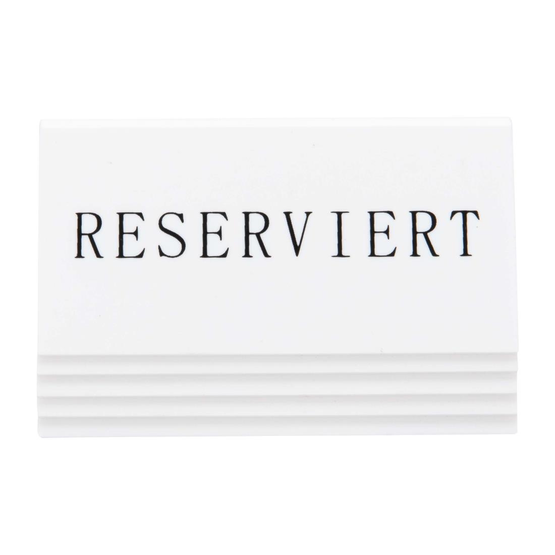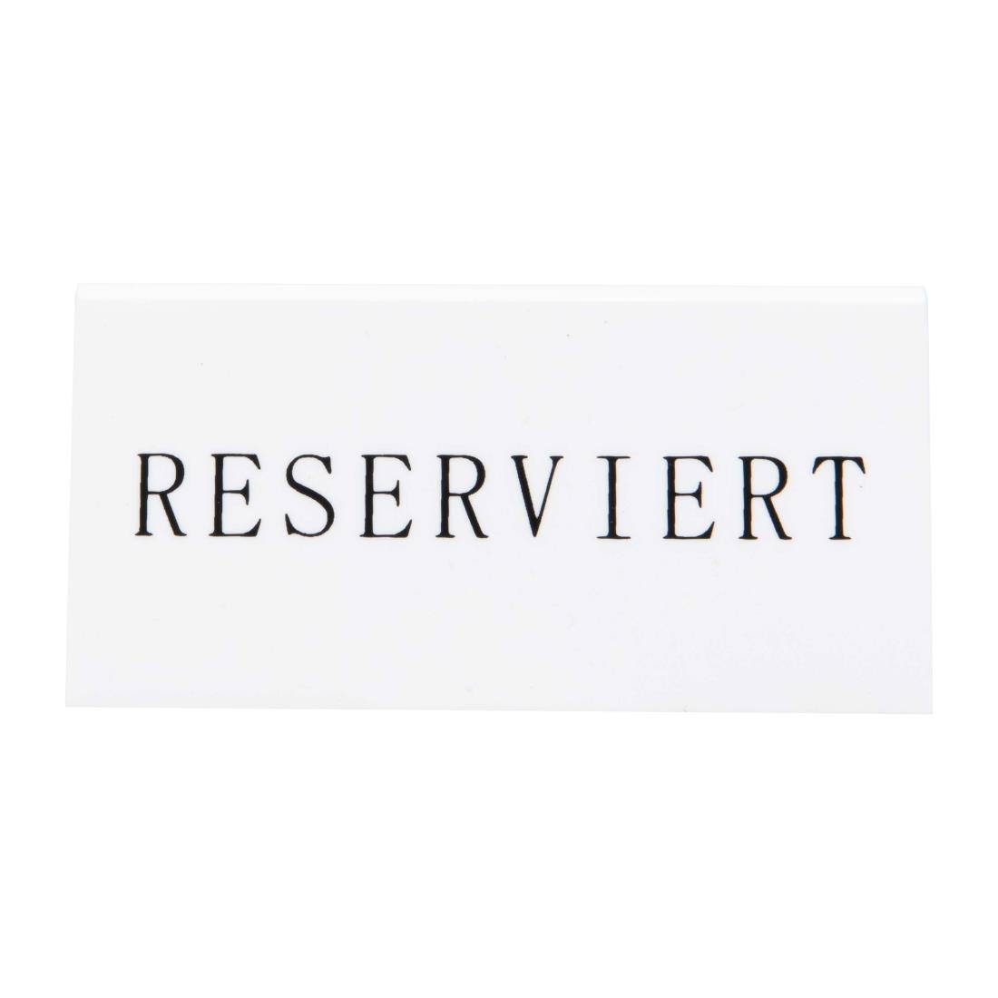 Eine einfache und elegante Möglichkeit, Personal und Gäste auf die Tischreservierung hinzuweisen. Aus weißem Acryl, schwarze Beschriftung.