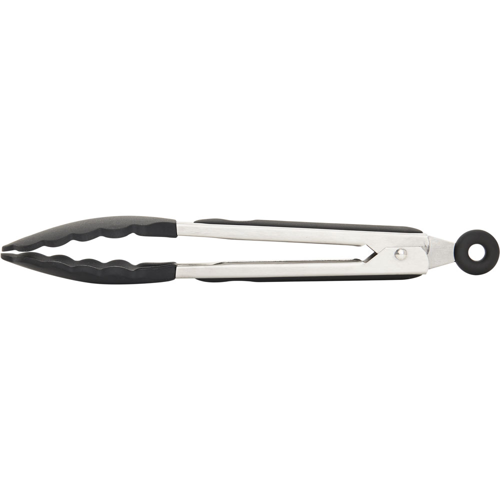 Wenn es an Pfanne oder Grill heiß hergeht, haben Sie mit dieser universellen Zange alles im Griff.Die Laffen der Zange sind aus hitzebeständigem Silikon und haben gewellte Ränder, um Produkte leicht und sicher greifen zu können. Dabei werden empfindliche Oberflächen gleichzeitig vor Kratzern geschützt.Durch die Silikonbeschichtung auf den Griffen haben Sie die Zange sicher im Griff. Nach der Arbeit kann die Zange platzsparend zusammengeklappt und aufgehängt werden.