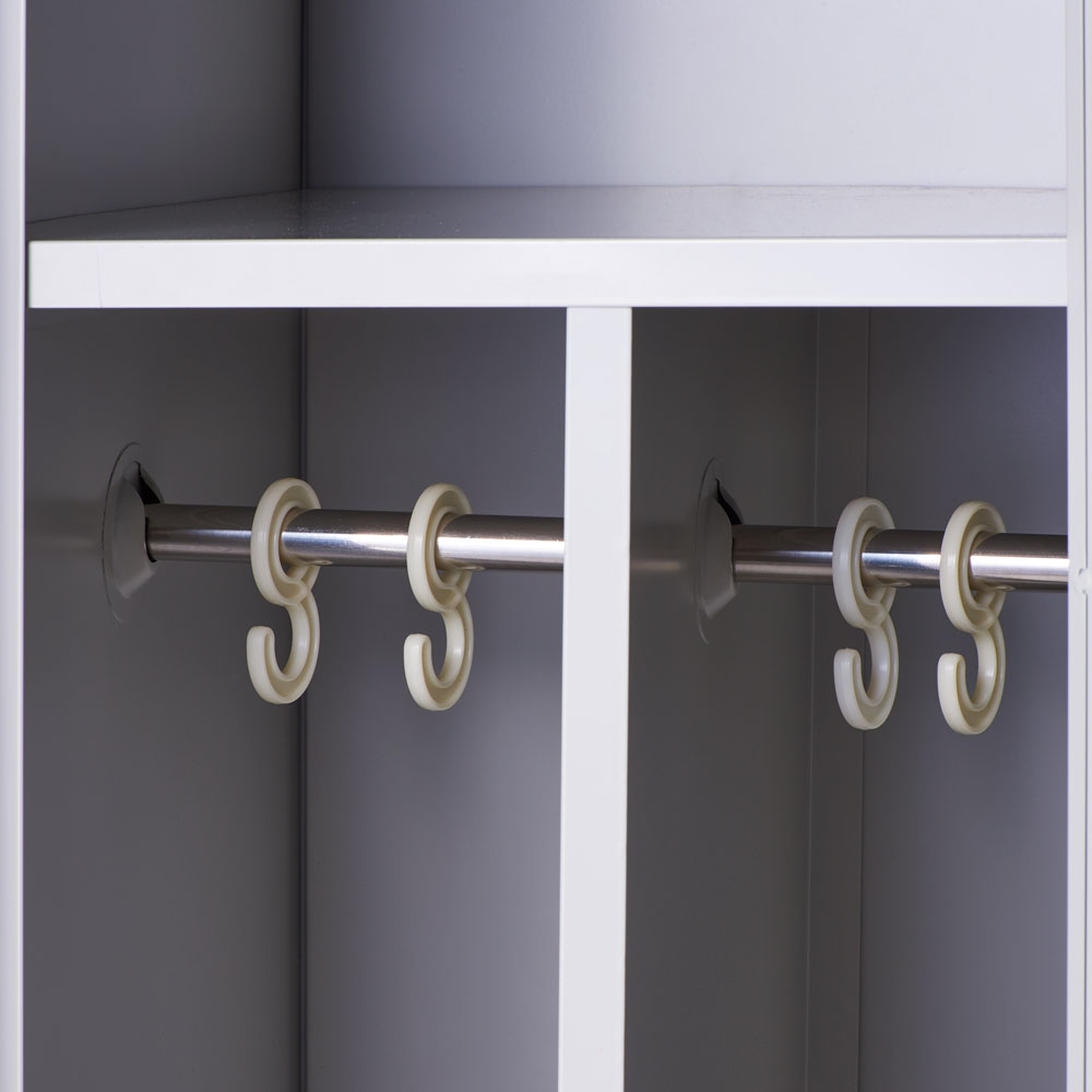 Der Spind ist eine praktische, schnelle Lösung, um eine sichere Aufbewahrungsmöglichkeit in öffentlich zugänglichen Räumlichkeiten zu schaffen.Mit einer Breite von nur 40 cm bietet der Spind mit dem geteilten Schrankinnenraum und der Ablagefläche genügend Platz zum Verwahren von Kleidung und anderen persönlichen Gegenständen.Die abschließbare Schranktür verfügt über Lüftungsschlitze und ein Feld für ein Namensschild.