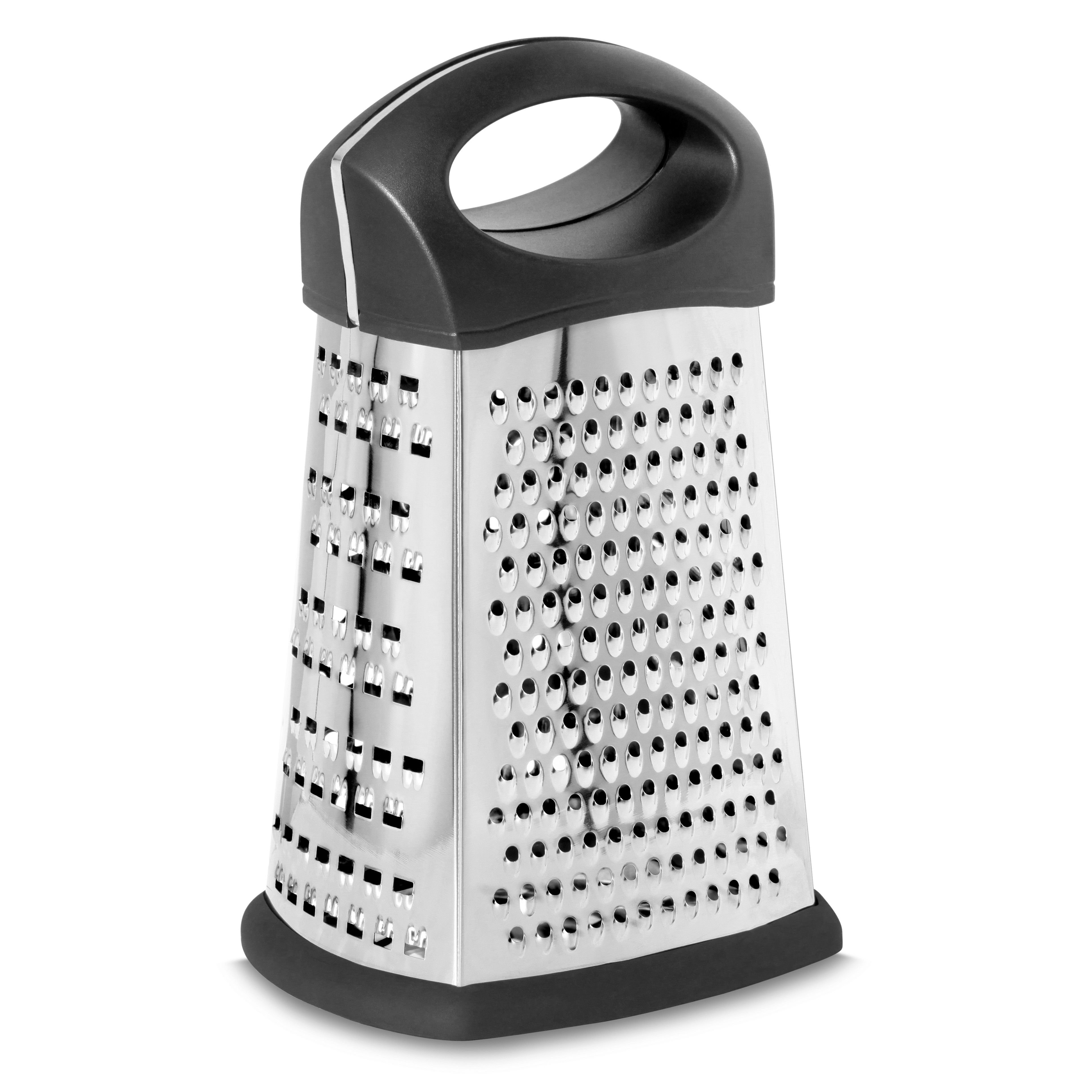 Die Turmreibe bietet Ihnen vier unterschiedliche Möglichkeiten zum feinen oder groben Reiben, Raspeln oder Hobeln.Die Klingen besitzen eine langanhaltende Schärfe und schneiden mühelos die verschiedensten Lebensmittel ohne diese dabei zu zerdrücken.Dank des Anti-Rutsch-Bodens ist die Vierkantreibe standfest und durch den gerundeten Griff haben Sie die Reibe beim Arbeiten fest im Griff.Die Reibe aus Edelstahl ist langlebig und pflegeleicht.