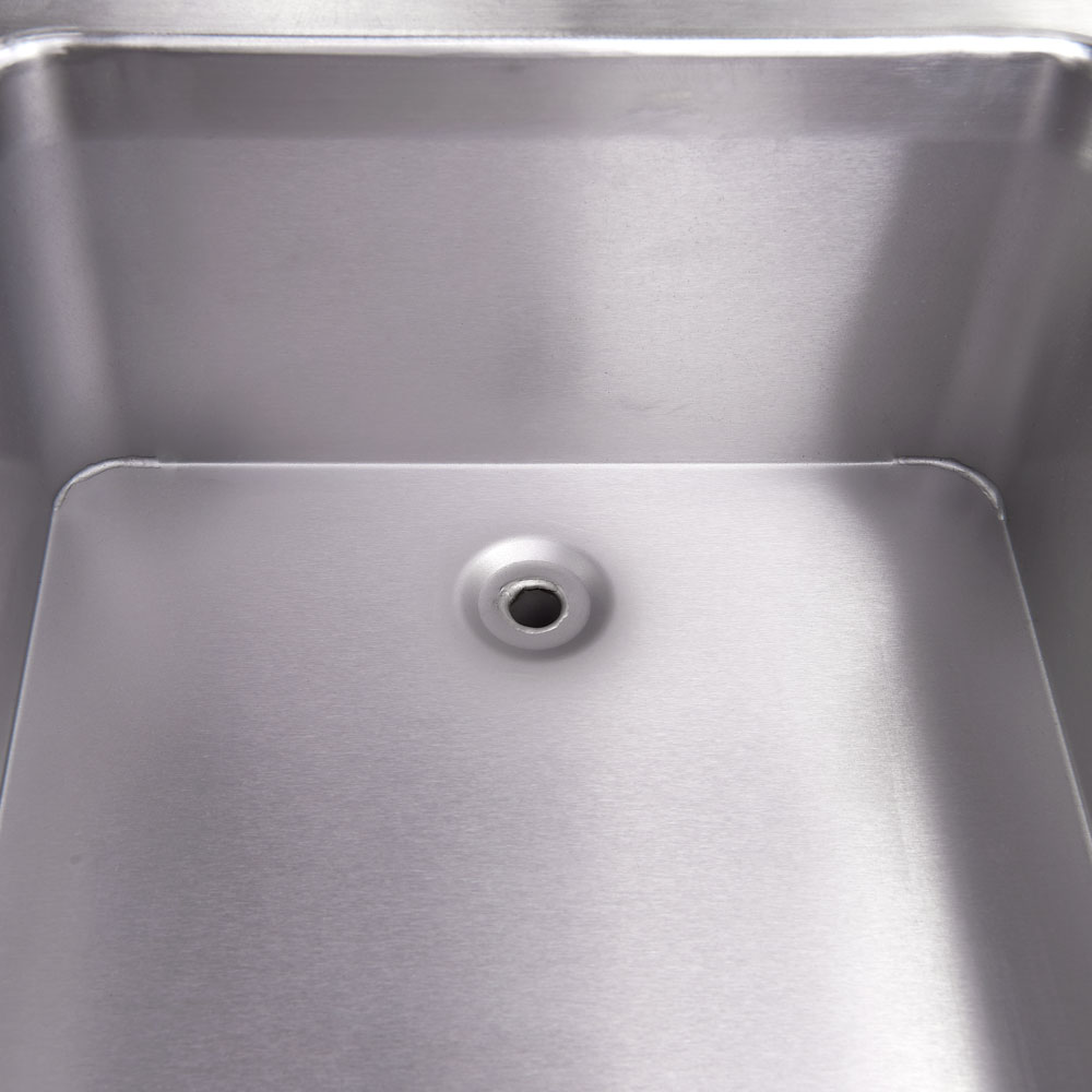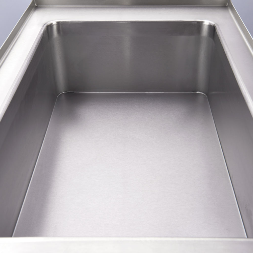Durch den Einsatz innovativer Technologie hält das Bain Marie von Stalgast die gewählte Temperatur konstant aufrecht. So behalten Ihre Speisen die optimale Verzehrtemperatur ohne Qualitätsverlust und Schwankungen der Kerntemperatur werden vermieden, um die Lebensmittelsicherheit zu gewährleisten!Sie können den Speisewärmer je nach Bedarf mit einem GN 1/1, zwei GN 1/2 oder drei GN 1/3 Behältern bestücken. Der/die Behälter mit einer max. Höhe von 150 mm liegen passend und ohne zu verrutschen über dem Wasserbecken.Wie alle Geräte der Serie 700 ND von Stalgast ist das Gehäuse aus pflegeleichtem, robustem Edelstahl solide gefertigt. Die Kontrollleuchten, die rutschfesten, gummierten Knebel in Edelstahloptik sowie die Verriegelung und der Auslass befinden sich auf dem abgeschrägten Bedienfeld mit gut lesbarer, lasergravierter Beschriftung.Um am Ende des Arbeitstages das Wasser abzulassen, brauchen Sie nur den Auslaufbogen in den Auslass stecken, die Verriegelung zu öffnen und die Leerung der Wanne beginnt, sauber, schnell und zuverlässig!Die dreiseitige Aufkantung lässt sich um einen optionalen Kamin für ein einheitliches Erscheinungsbild in Ihrer Küche und eine leichte Säuberung erweitern (SL993204).Falls Sie einen Unterbau für dieses Tischgerät wünschen, ist das kein Problem. Sie müssen sich nur zwischen den vielfältigen Möglichkeiten der Firma Stalgast entscheiden: es sind offene oder geschlossene Unterbauten mit und ohne Tür in den unterschiedlichsten Größen, ganz nach Ihren Wünschen, verfügbar.