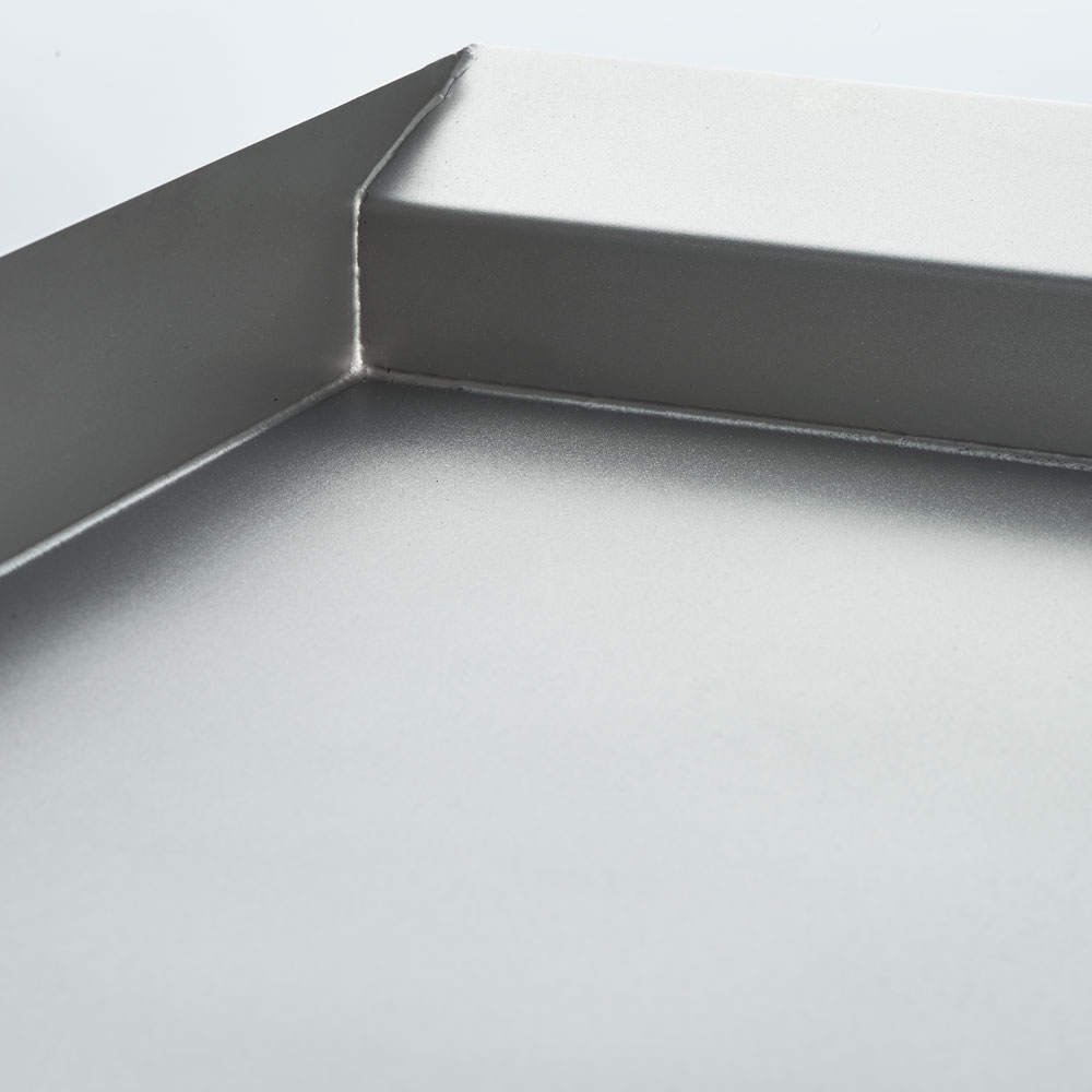 Für diese Griddleplatte mit einer Breite von nur 80 cm finden Sie problemlos einen Platz in Ihrer Küche. Die Griddleplatte ist somit das ideale Zusatzgerät für mittlere bis große Betriebe.Die glatte, ca. 4400 Quadratzentimeter große Fläche können Sie universell zum Braten von Fisch, Fleisch oder Gemüse nutzen. Die zwei Heizzonen lassen sich separat regeln. Die Grillfläche wird gleichmäßig und bis zum Randbereich auf bis zu ca. 300°C erhitzt.Das standsichere Gerät ist besonders einfach zu bedienen. Am Ende des Arbeitstages lassen sich die glatte Grillfläche und die Fettauffangschale tadellos und einfach reinigen.