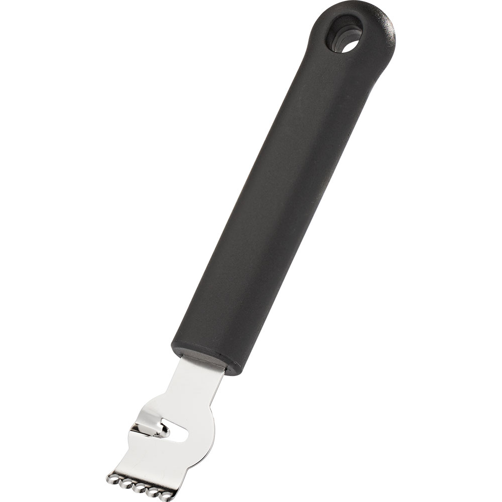 Aromen von Zitrusfrüchten sorgen für den kleinen, feinen Unterschied, der Ihre Speisen, Gebäcke oder Cocktail besonders wohlschmeckend machen.Damit nicht die weiße, bittere Fruchthaut den Geschmack negativ beeinflusst, sollten Sie einen Zestenreißer verwenden.Mit den kleinen scharfen Klingen lassen sich im Nu feine Streifen abziehen. Mit der seitlichen Einzelklinge können breitere Streifen abgezogen werden.Tipp: haben Sie als optisches Highlight schon einmal Zesten bei der Herstellung von Eiswürfeln mit eingefroren?