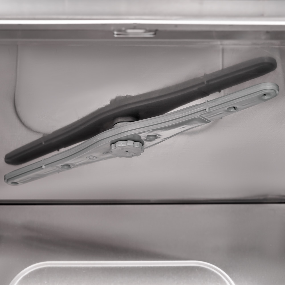 - 3 Wascharme (Edelstahl/Kunststoff), unten Wasch- und Spülarm, oben Spülarm