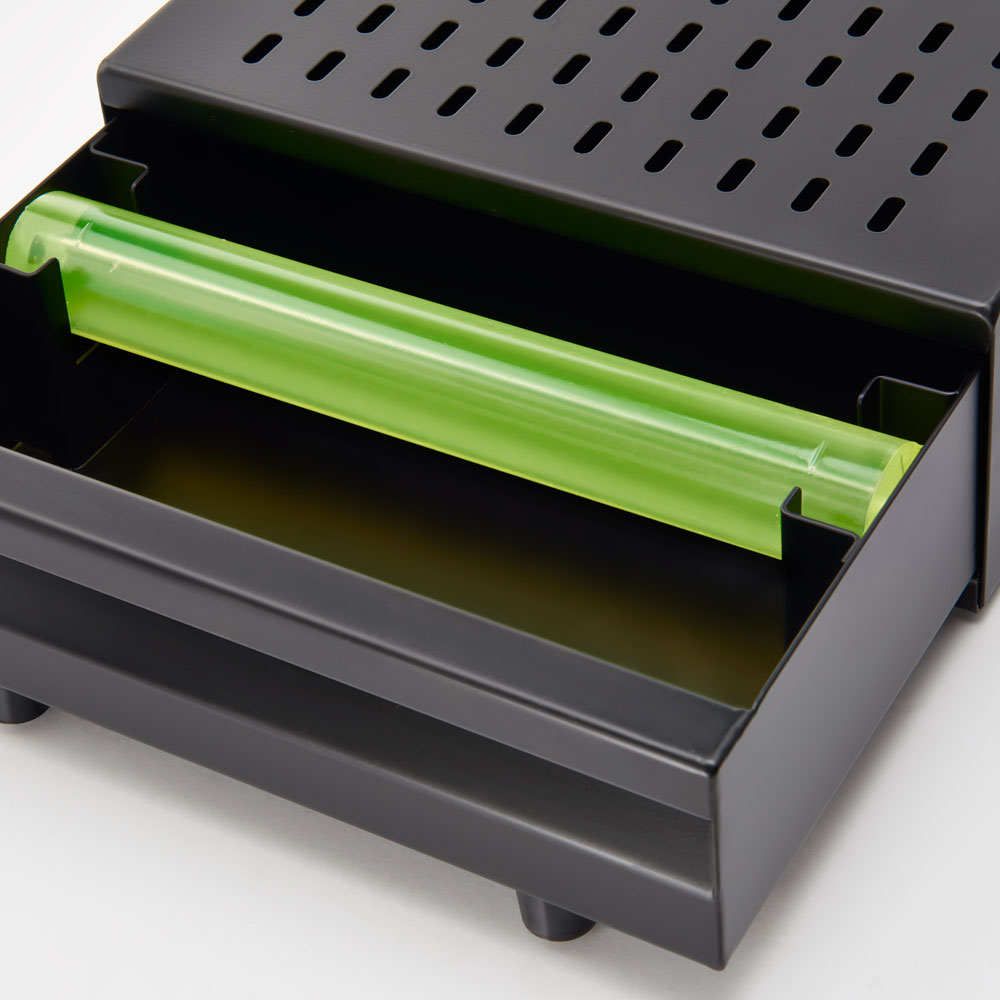 Zum Entsorgen des PUK nach dem Brühen bietet sich die Sudschublade mit vielen Vorteilen an.Die Abklopfstange und die Füße aus Kunststoff mindern die Geräuschentwicklung beim Abklopfen. Lüftungsschlitze auf der Oberseite lassen Feuchtigkeit entweichen, um Schimmel vorzubeugen.Sie können diese Schublade, je nach Maßen und Wunsch, unter der Kaffeemühle oder der Siebträgermaschine platzieren, so haben Sie kurze Wege bei der Kaffeezubereitung sowie einen sauberen Arbeitsplatz.Zum Entleeren und zur einfachen Reinigung des Behälters können Sie die Abklopfstange entnehmen.