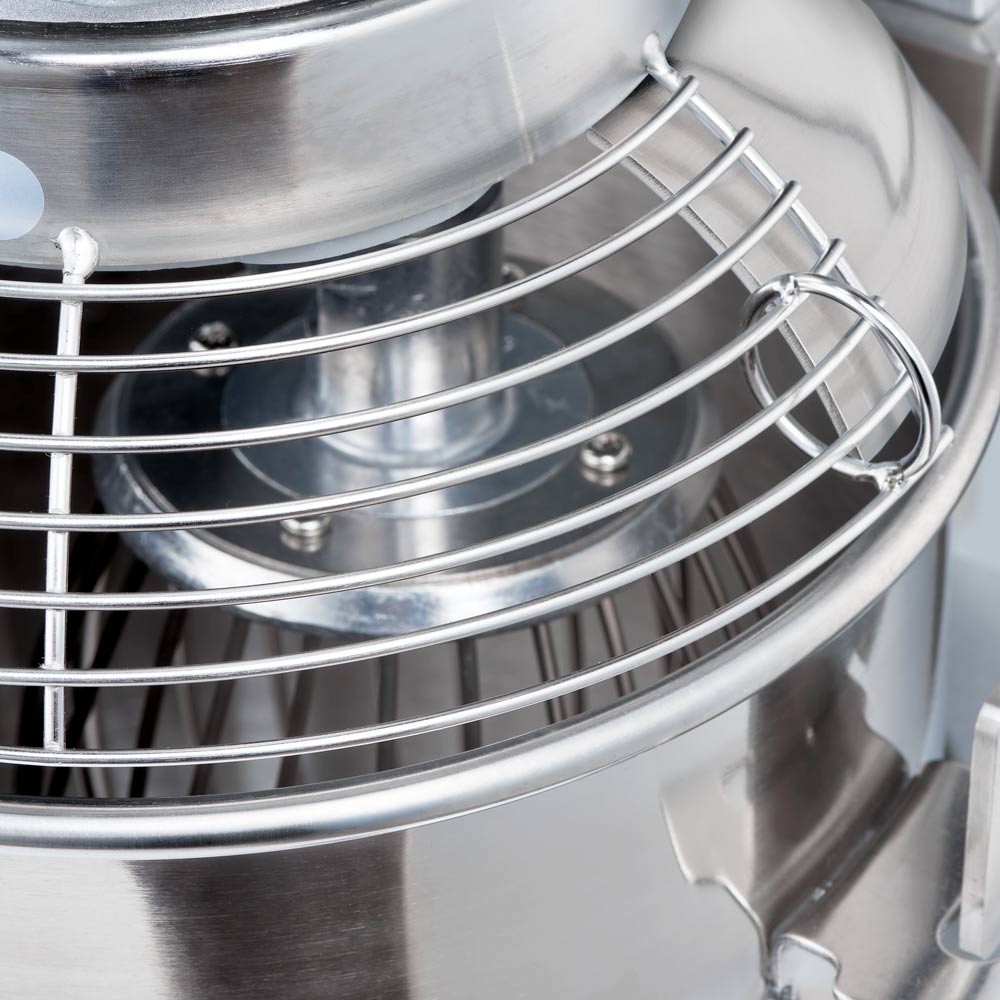 Der robuste Planetenrührer eignet sich für kleine sowie mittlere Betriebe und für die Verarbeitung von leichten Teigen, Cremes und Schaumspeisen. Die Bedienung ist einfach und sicher.Über das klar angeordnete Bedienfeld wählen Sie zwischen drei Geschwindigkeitsstufen. Das planetarische Rührsystem bewegt das Rührwerkzeug sowohl um die eigene Achse als auch am Schüsselrand entlang. Auf diese Weise werden alle Zutaten ideal vermengt, ohne das Produkte am Schüsselrand verbleiben.