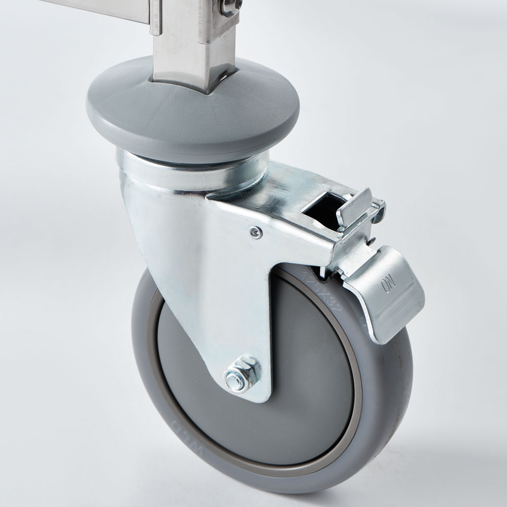 - vier leichtgängige Kunststoffrollen, zwei davon mit Feststellbremse