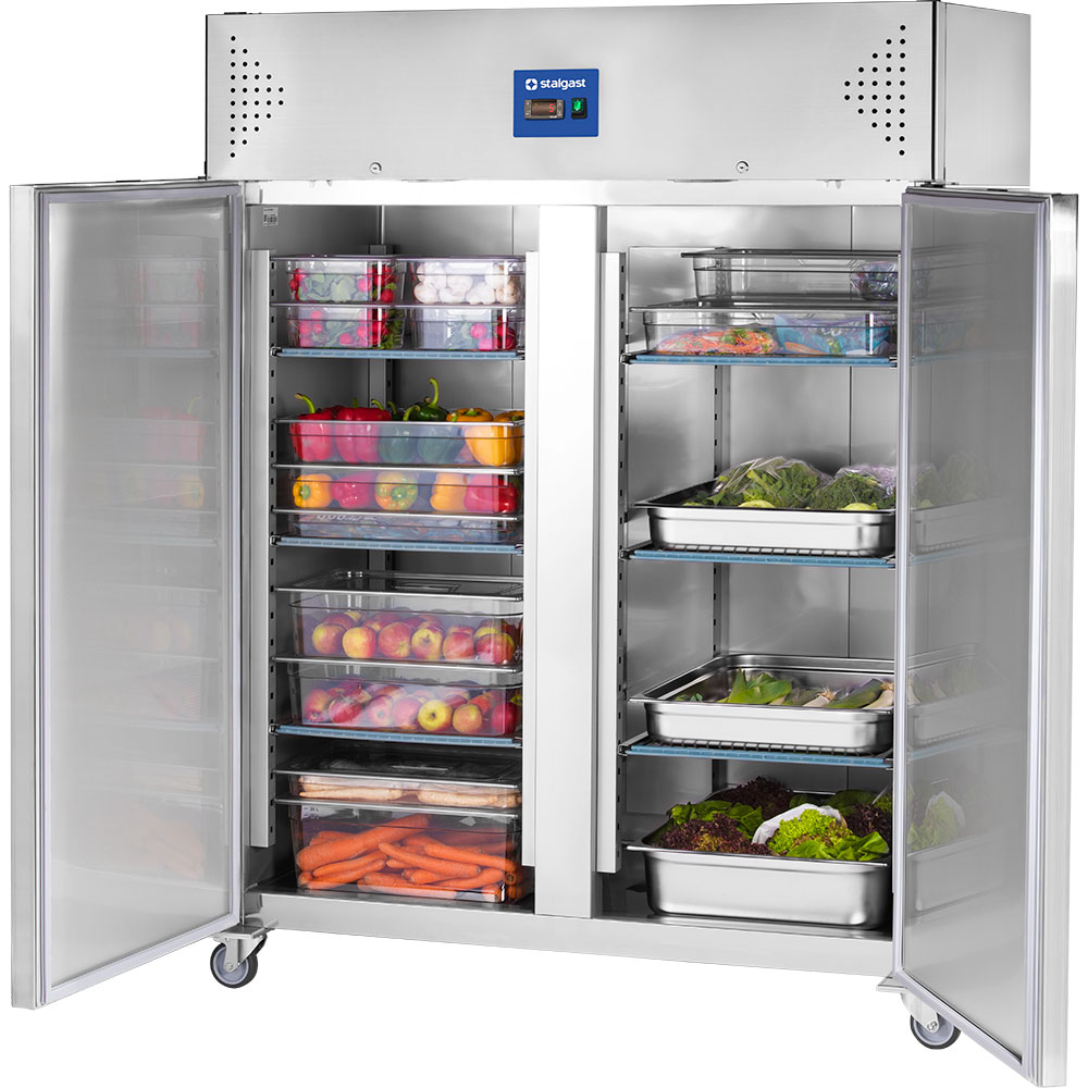 Starline Edelstahl Doppeltür-Kühlschrank mit Rädern, GN 2/1, 1480x830x2010 mm (BxTxH)