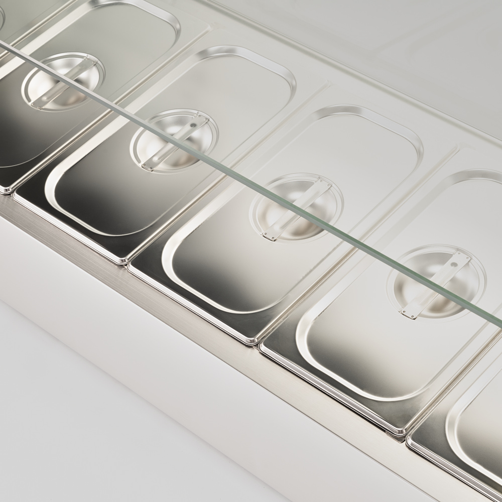 Starline Edelstahl Pizzakühlaufsatz mit Glasabdeckung, 6x GN 1/3, 1400x395x440 mm (BxTxH)