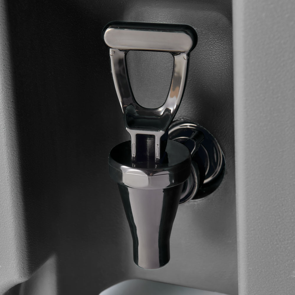 Schnell befüllt, sicher verschlossen transportiert bei Einhaltung der Getränketemperatur und ein präziser Ausschank. Diese Grundfunktionen erfüllt der Getränkebehälter mit Bravour.Ganz gleich, ob Sie Kalt- und Heißgetränke transportieren, der doppelwandige Behälter hält die Temperatur über einen längeren Zeitraum konstant.Beim Transport können Sie den Behälter durch die zwei Griffe sicher Tragen und platzsparend stapeln. Die Spannverschlüsse halten den Behälter sicher geschlossen.Durch den Abstand von 10 cm zur Tischplatte können Sie beim Ausschank Tassen und Becher direkt unter den Ablasshahn stellen und tropffrei befüllen.