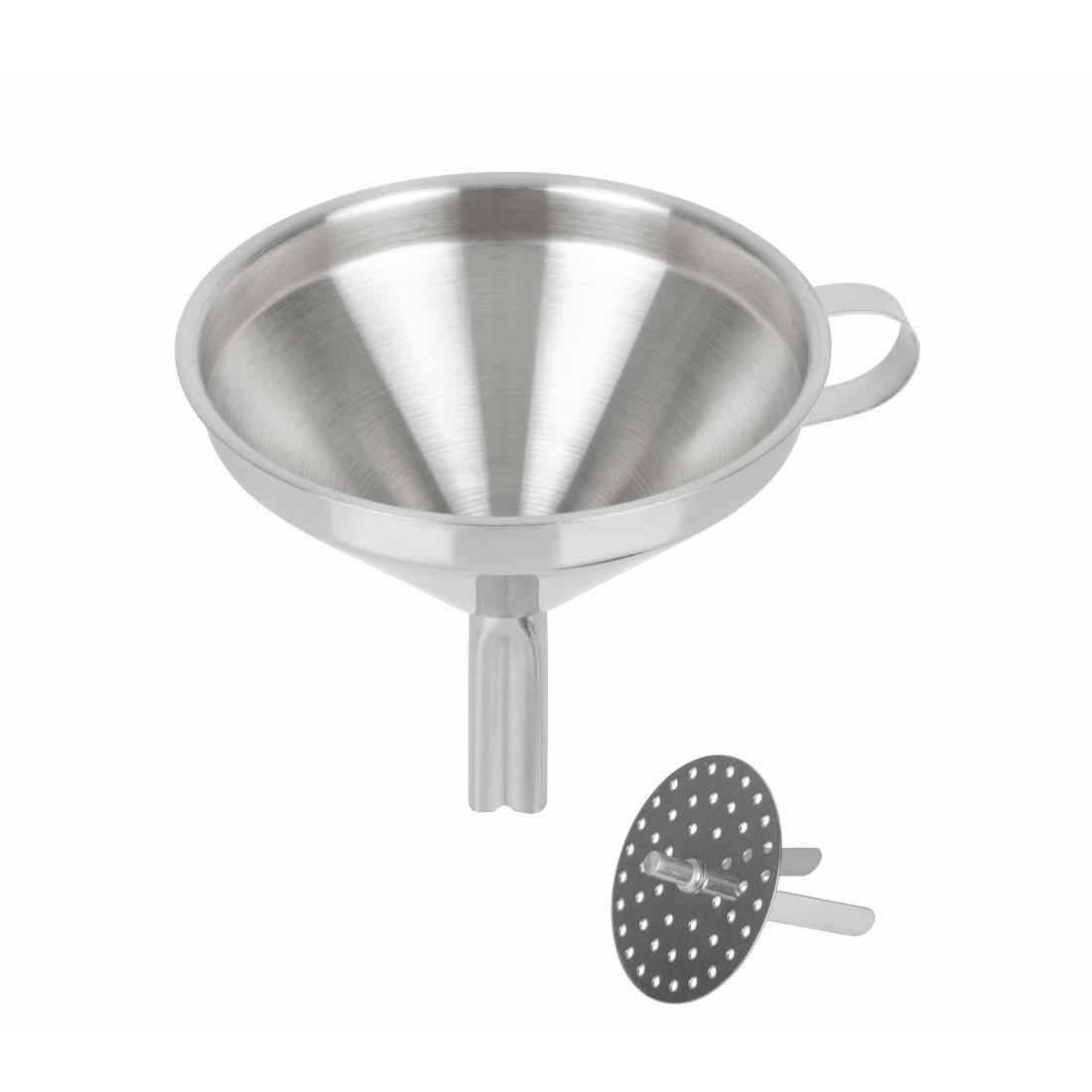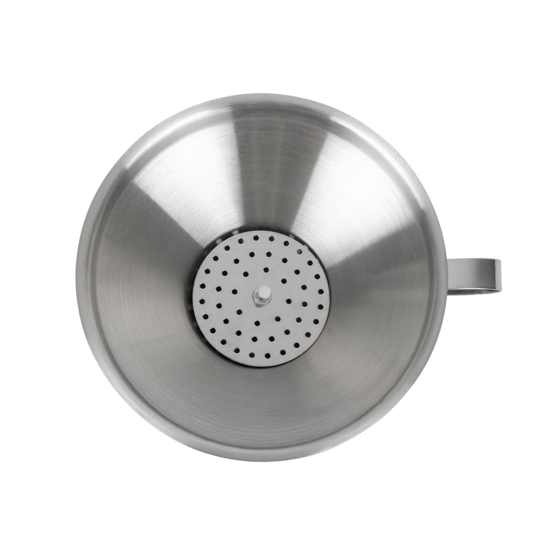 Edelstahltrichter mit herausnehmbarem Sieb. Oberseite 12(Ø)cm x Röhre 1,5(Ø)cm.