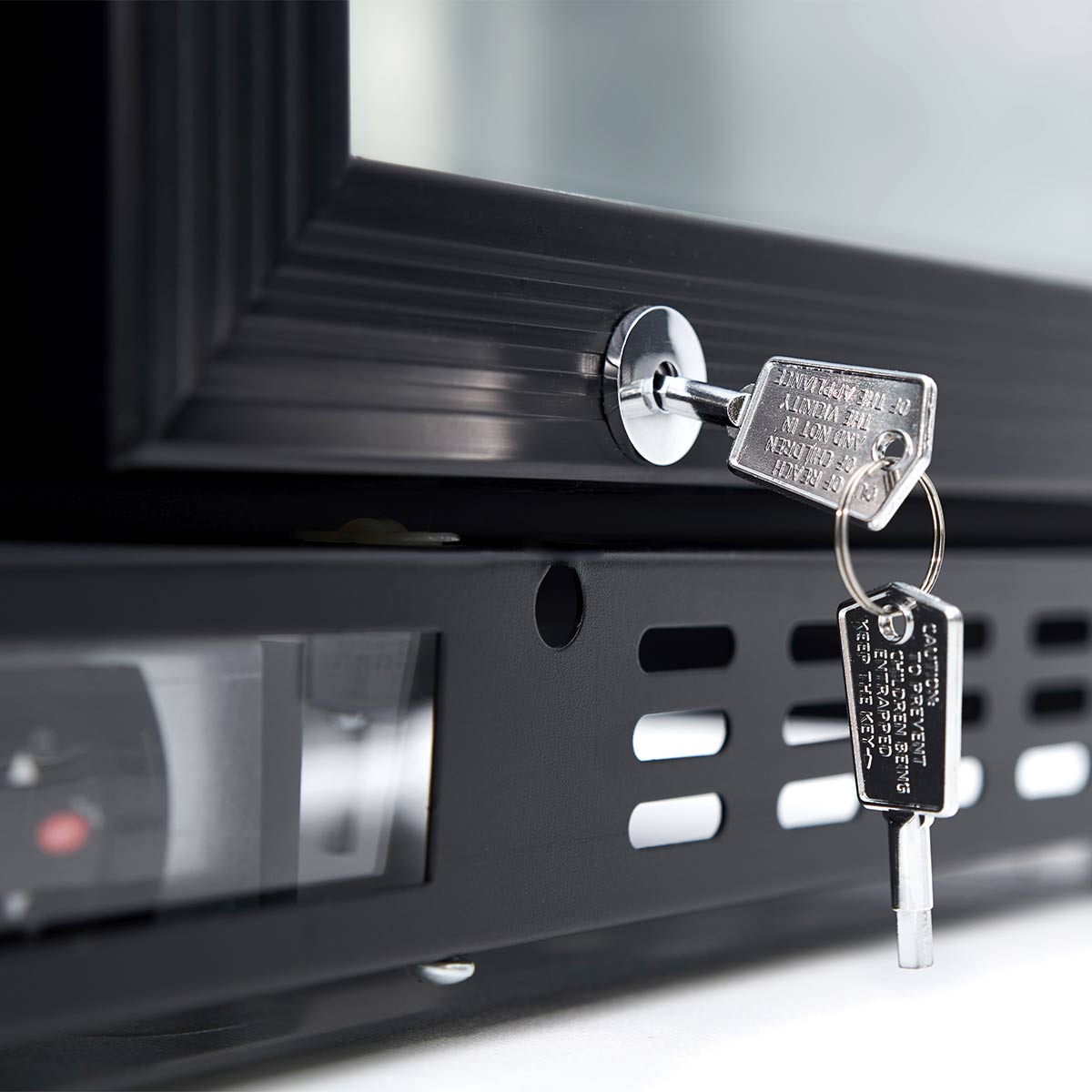 - abschließbare Glastür aus Kunststoff mit Doppelverglasung