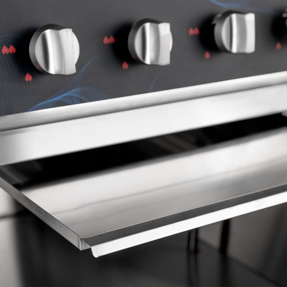 - tiefgezogene, reinigungsfreundliche Kochmulde mit abgerundeten Ecken