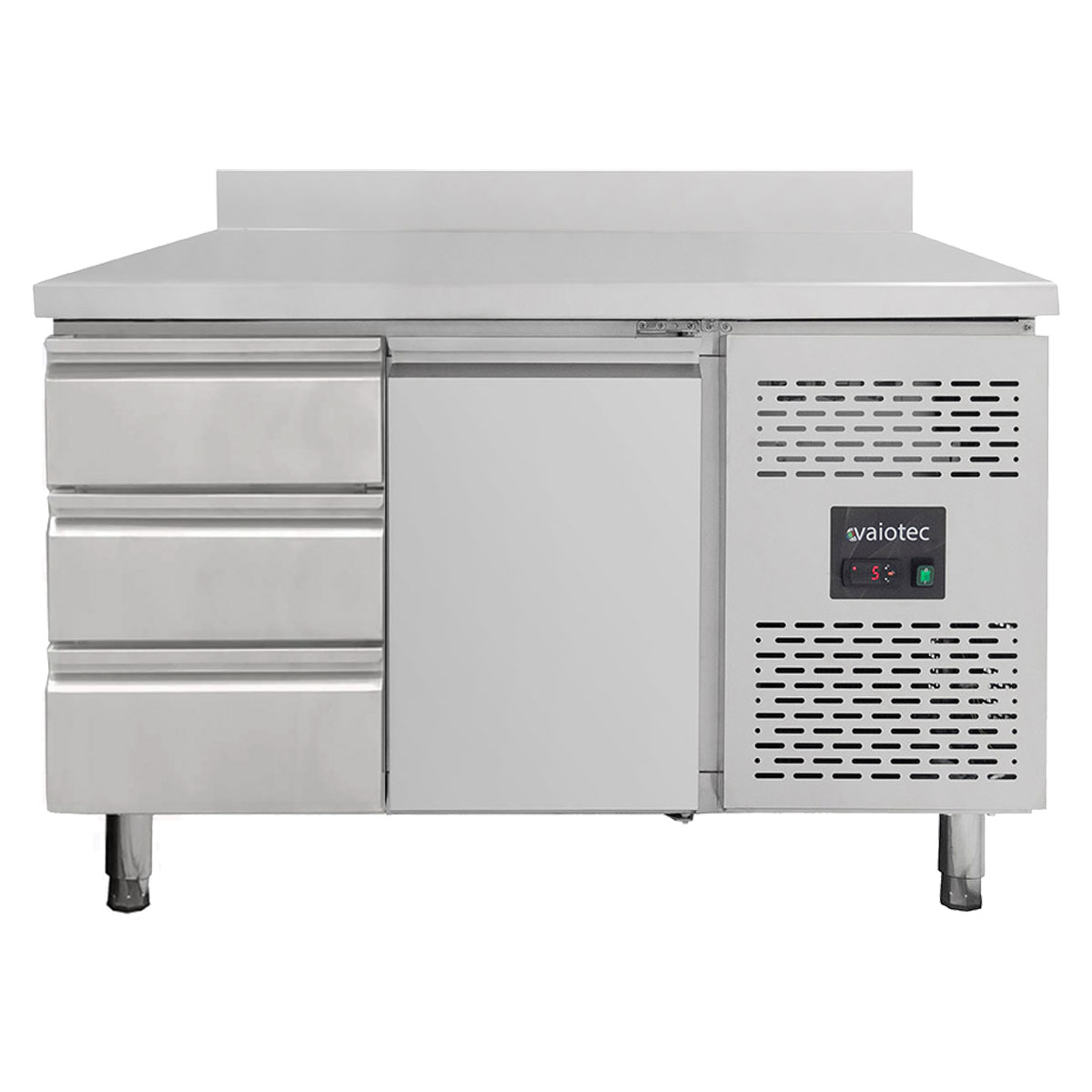 Vaiotec Kühltisch / 1 Tür & 3 Schubladen links inkl. Aufkantung - Monoblock, 1360 x 700 mm