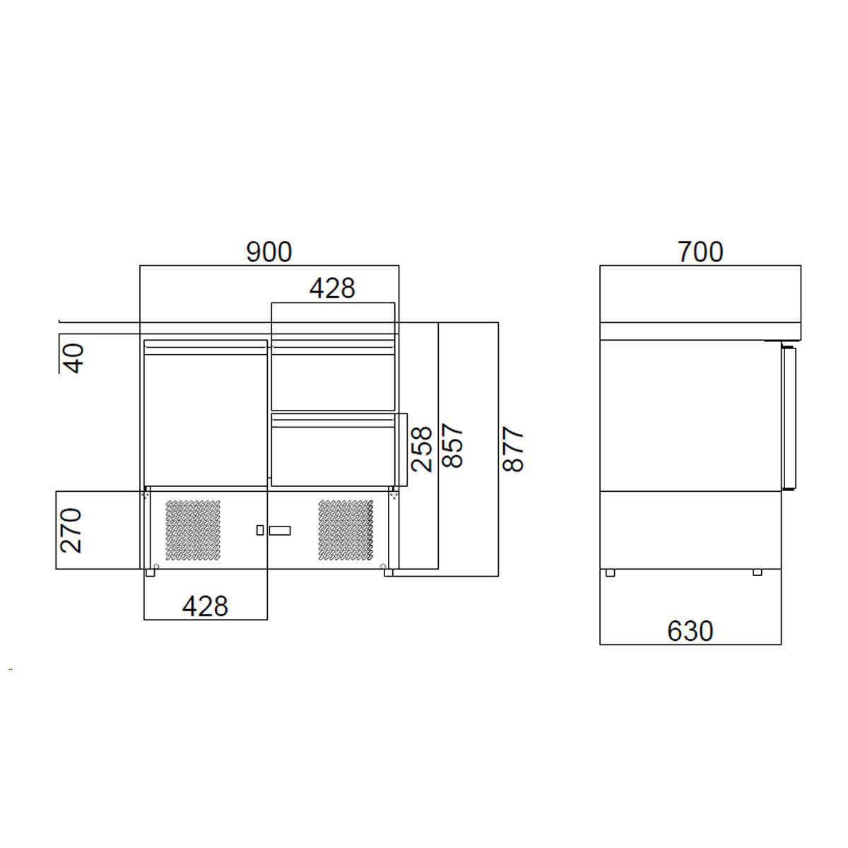 Vaiotec Kühltisch Mini / 2-fach - mit 1 Tür & 2 Schubladen, 900 x 700 mm