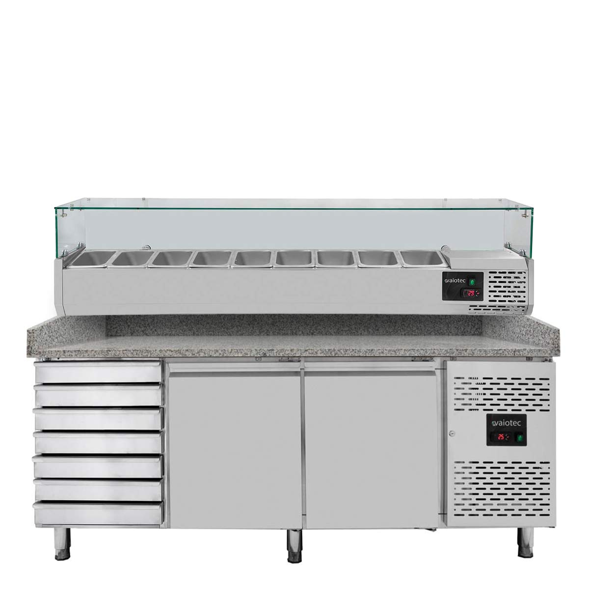 Vaiotec Pizzakühltisch / 2-türig & 7 Schubladen "grau" inkl. Kühlaufsatz GN1/3, 2020 x 800 mm