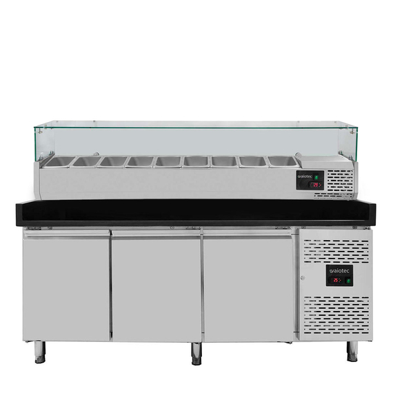 Vaiotec Pizzakühltisch / 3-türig "schwarz" inkl. Kühlaufsatz GN1/3, 2020 x 800 mm