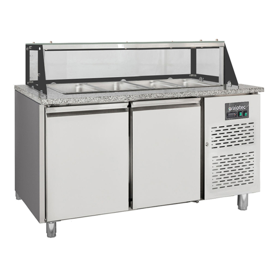 Vaiotec Salattheke / 2-fach mit Türen, Glasaufbau, für 4x GN 1/1 "grau", 1500 x 800 mm