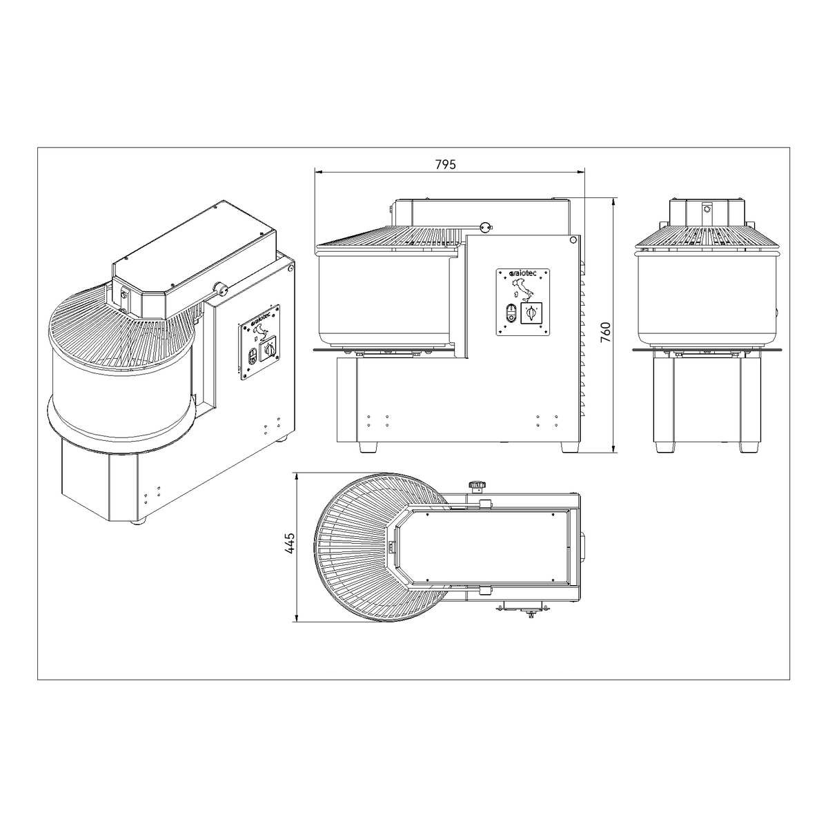 Vaiotec Teigknetmaschine abnehmbarer Kessel - 30 Liter / 400 Volt / 2 Geschwingkeiten, 445 x 795 mm