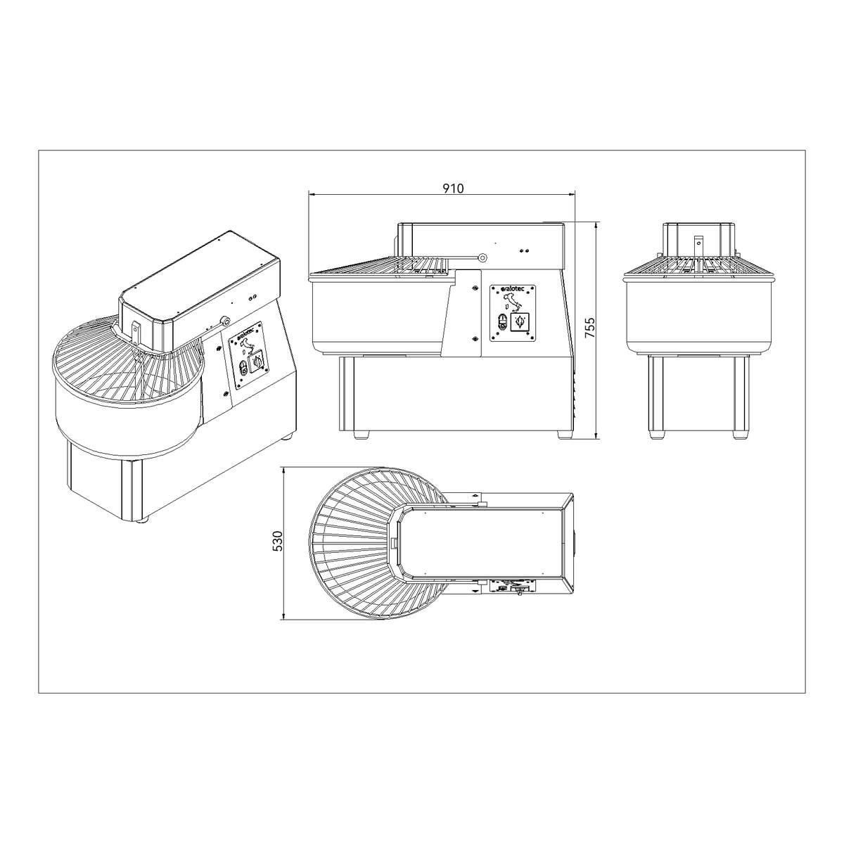 Vaiotec Teigknetmaschine fester Kessel - 50 Liter / 400 Volt / 2 Geschwindigkeiten, 530 x 910 mm