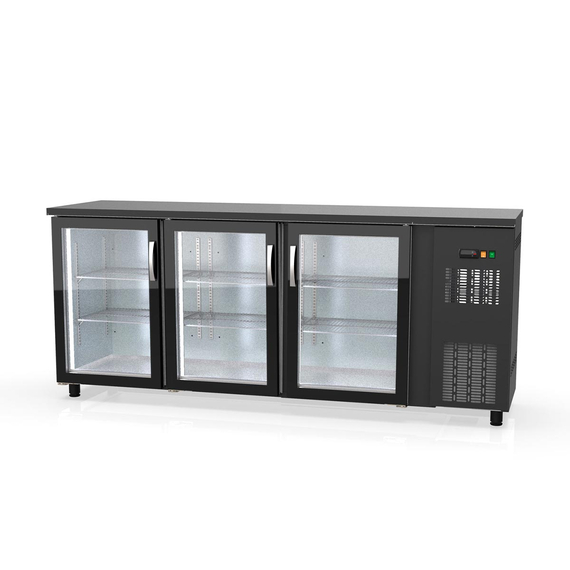 Vaiotec Topline Barkühltisch schwarz / 3 Glastüren, 2025 x 530 mm
