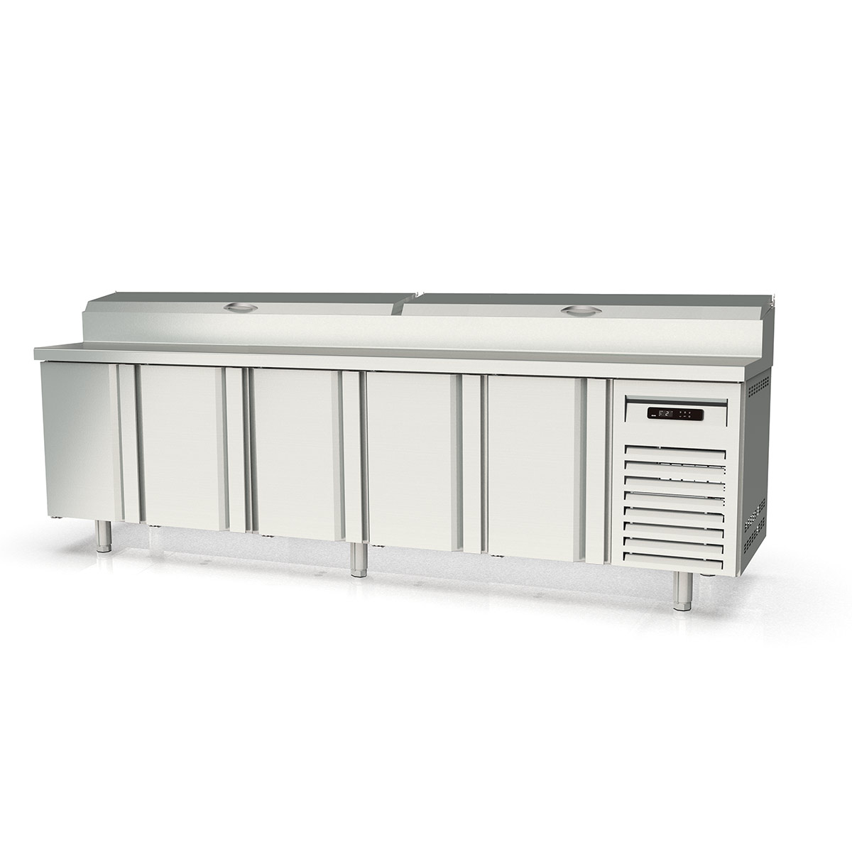 Vaiotec Topline Belegstation / 5-fach mit Türen, Edelstahlaufsatz, GN 1/4, 2695 x 700 mm