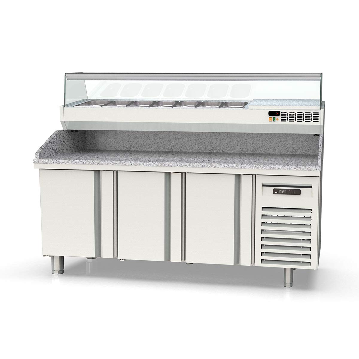 Vaiotec Topline Pizzatisch / 3-fach mit Türen, EN 60x40, Granitplatte grau, inkl. Kühlaufsatz, GN 1/4, 2020 x 800 mm