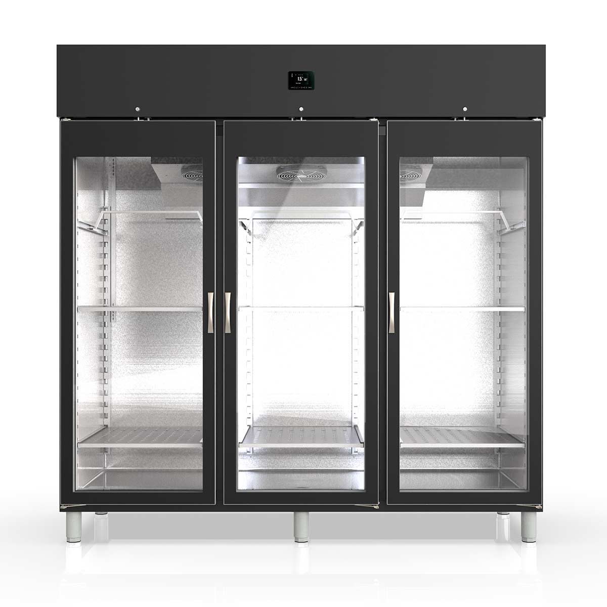- 3 abschließbare Glastüren mit Dreifachverglasung, selbstschließend und magnetverriegelt
