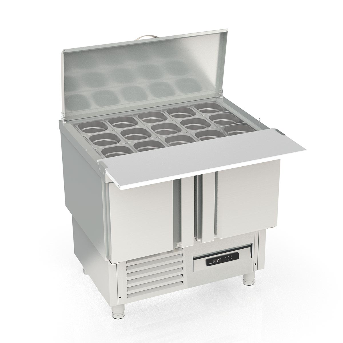 Vaiotec Topline Saladette / 2-fach mit Türen, Edelstahldeckel, GN 1/6, 925 x 700 mm