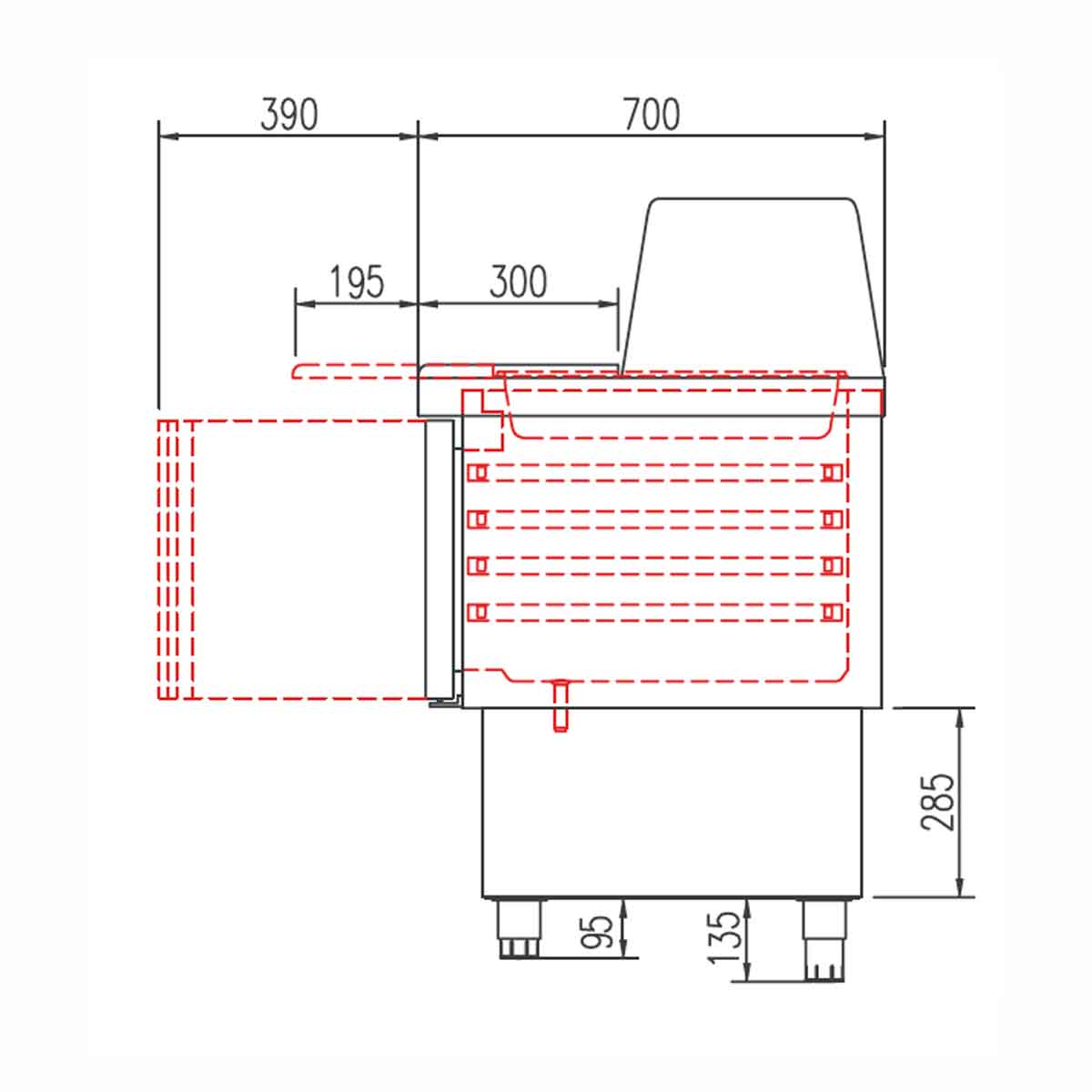 - höhenverstellbare Füße (95-135 mm)