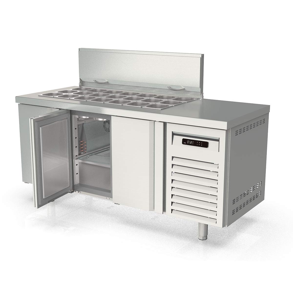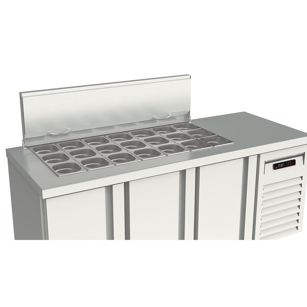 Vaiotec Topline Saladette / 3-fach mit Türen, Edelstahldeckel, GN 1/6, 1795 x 700 mm