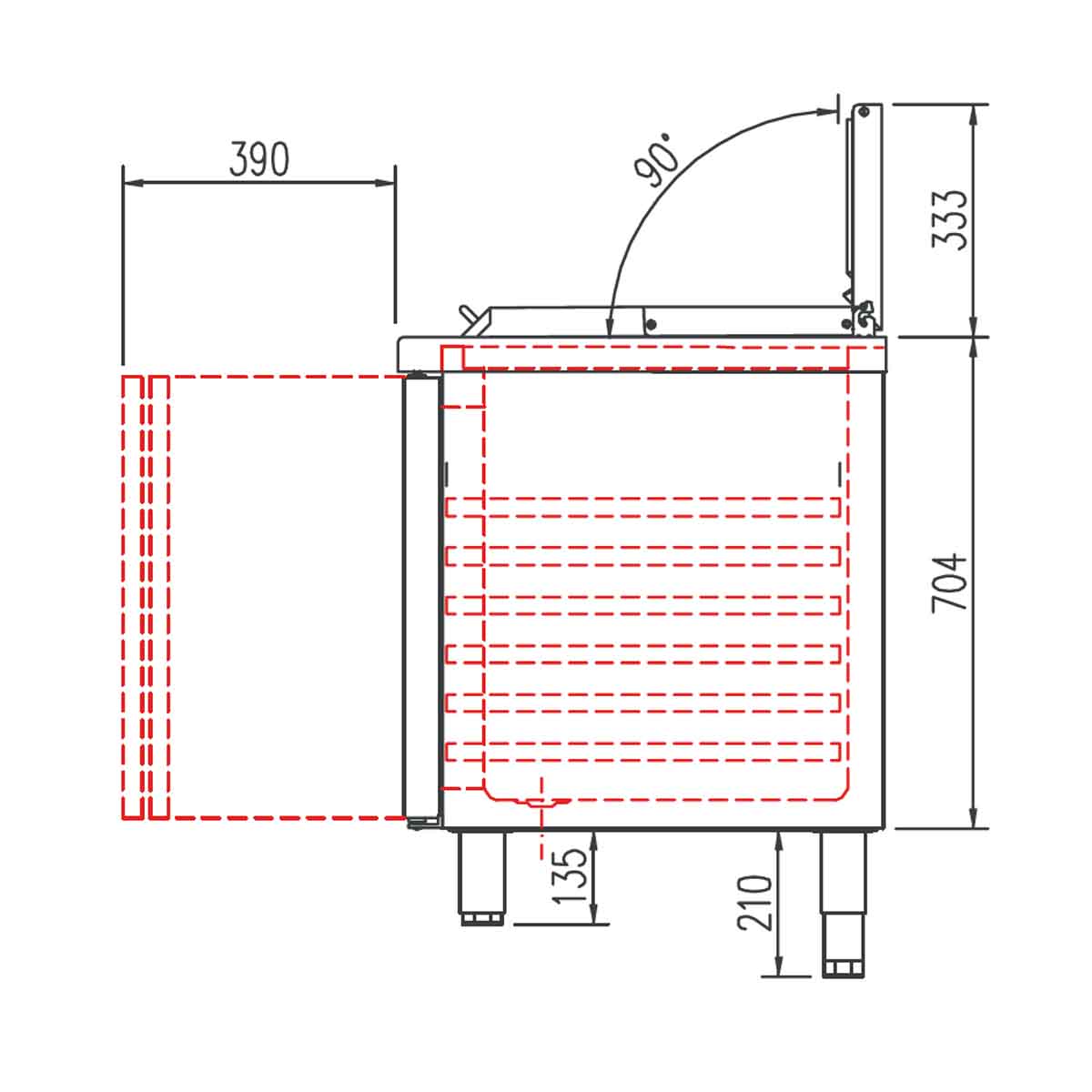 - höhenverstellbare Füße (135 - 210 mm)