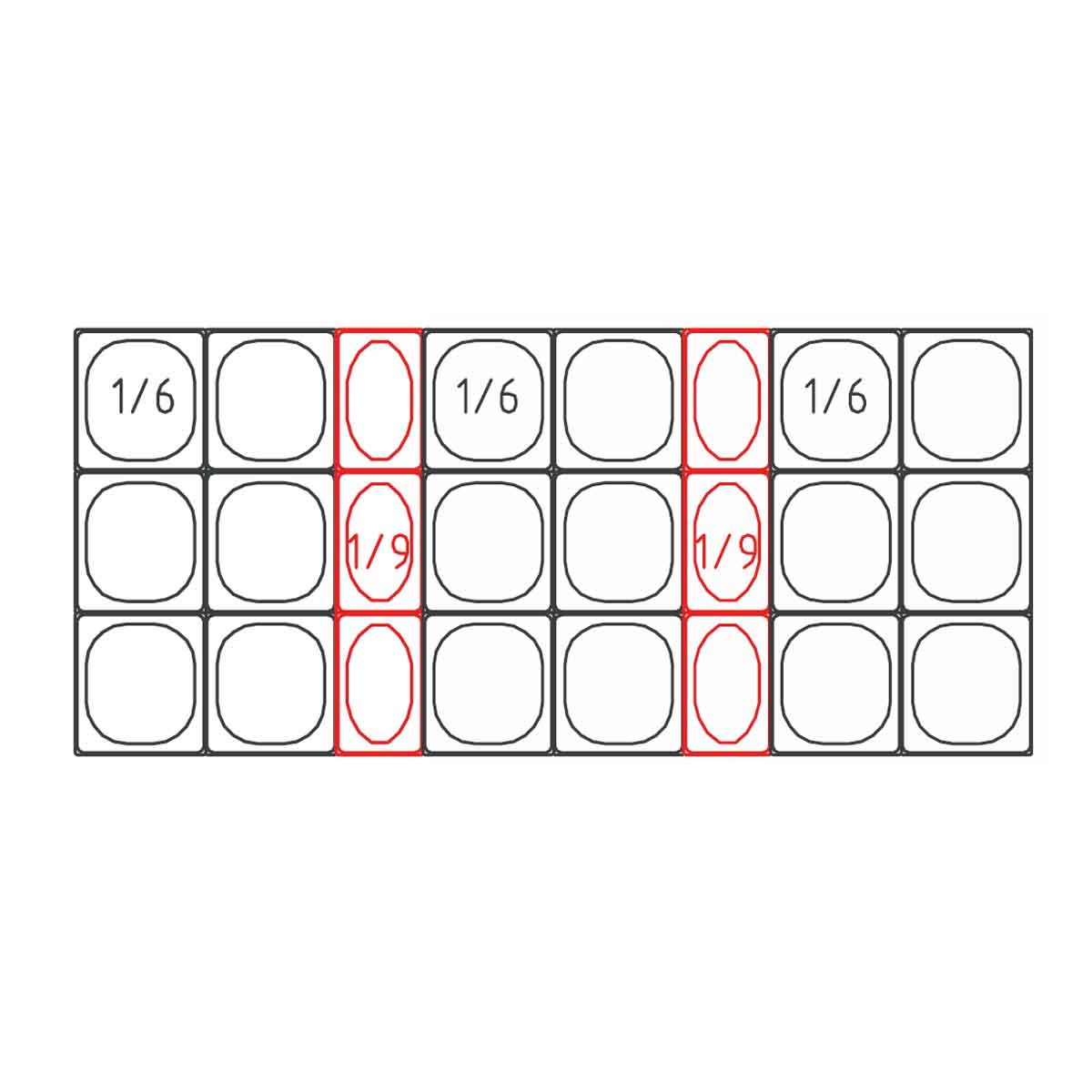 - geeignet für 18x GN1/6-200 + 6x GN1/9-100 Behälter