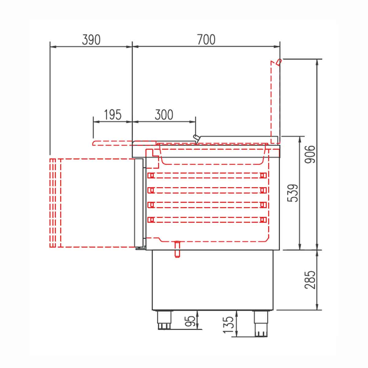 - höhenverstellbare Füße (95-135 mm)