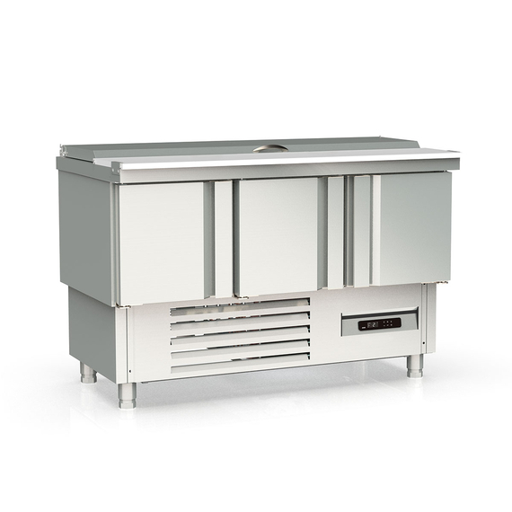 Vaiotec Topline Saladette / 3-fach mit Türen, Edelstahldeckel, GN 1/6 & 1/9, 1375 x 700 mm