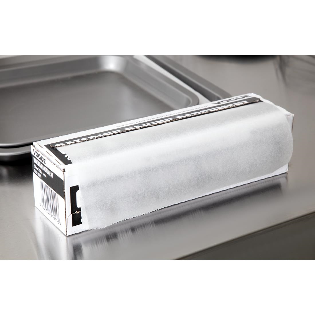 Stabiler Kartonspender mit Abreißkante. In 34cm oder 45cm Breite erhältlich. Rolllänge 50m. Beidseitig antihaftbeschichtet und geeignet bis 230°C.