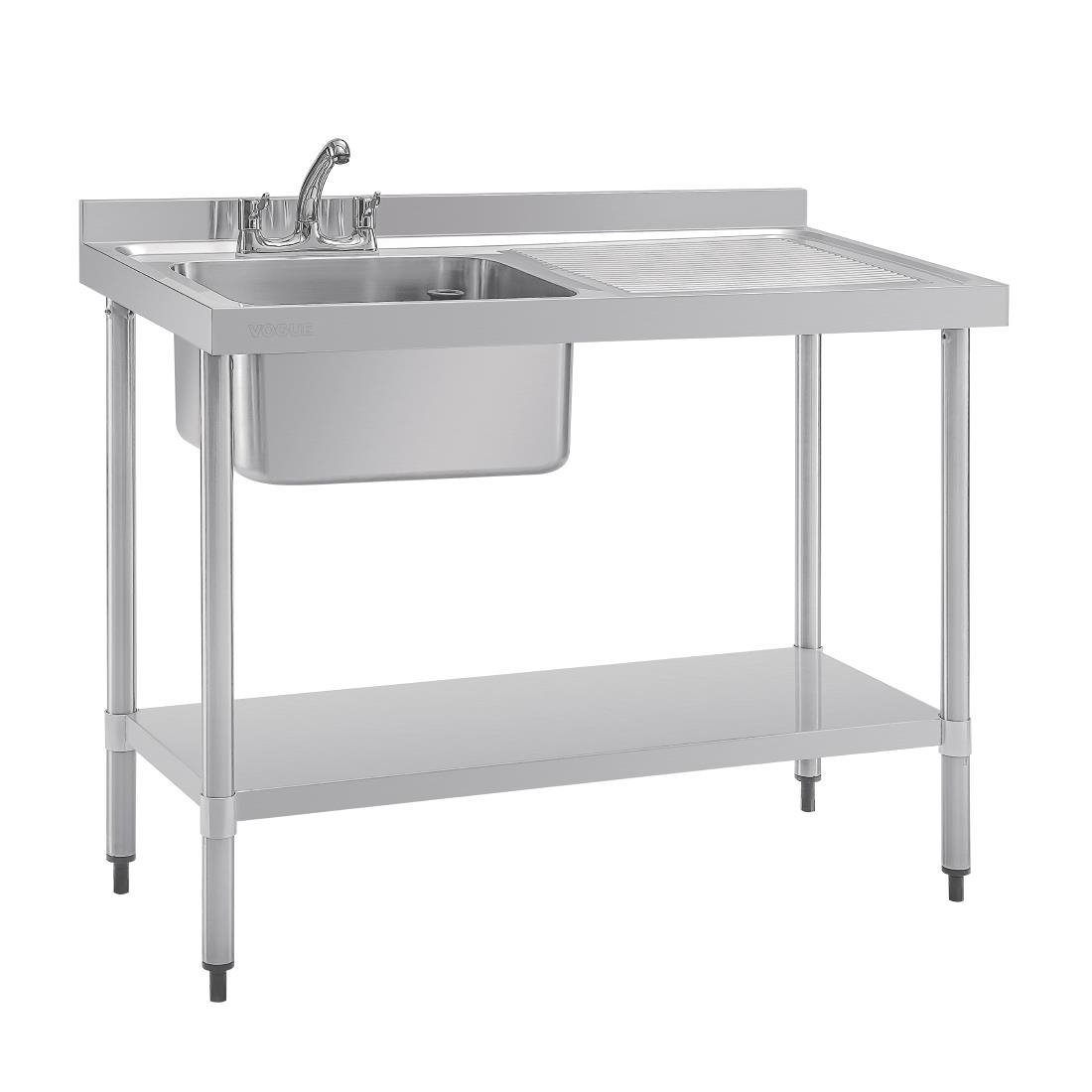 Sehr preisgünstige Spülen mit erhöhtem Rand, damit nichts hinter den Tisch fallen kann. Der schräge Abfluss lässt das Wasser zurück in die Spüle laufen.
