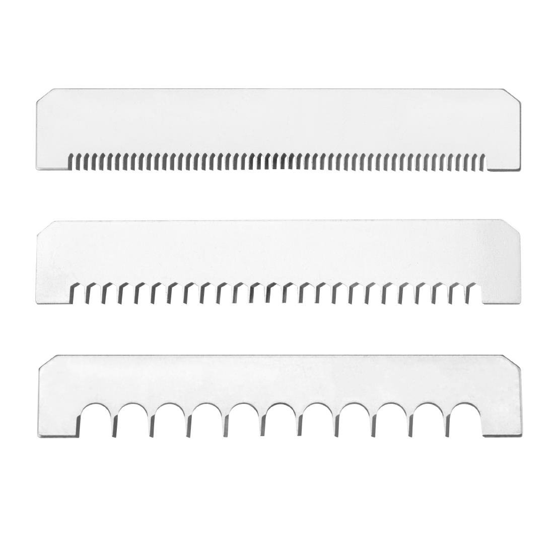 - Klingenstärke: Fein (K863) 1,6 mm, Mittel (K864) 3,2 mm, Grob (K861) 7,5 mm